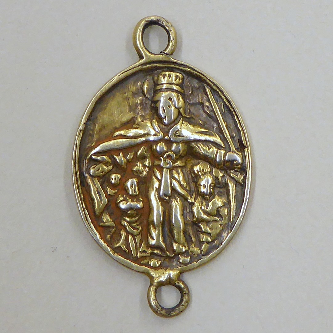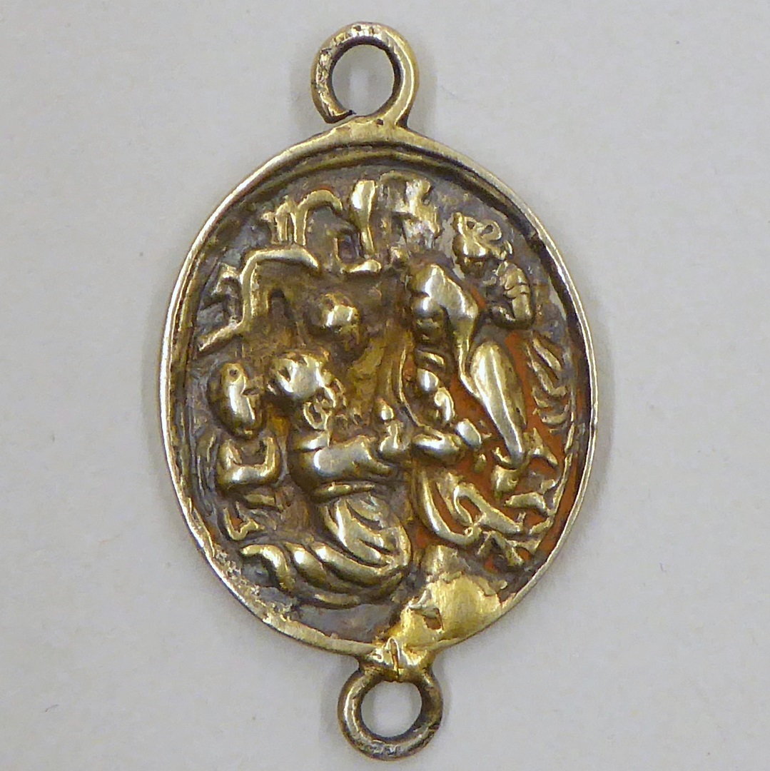 Devotiepenning, ovaal met twee ogen, met aanbidding der drie koningen, kz. Ursula van Keulen