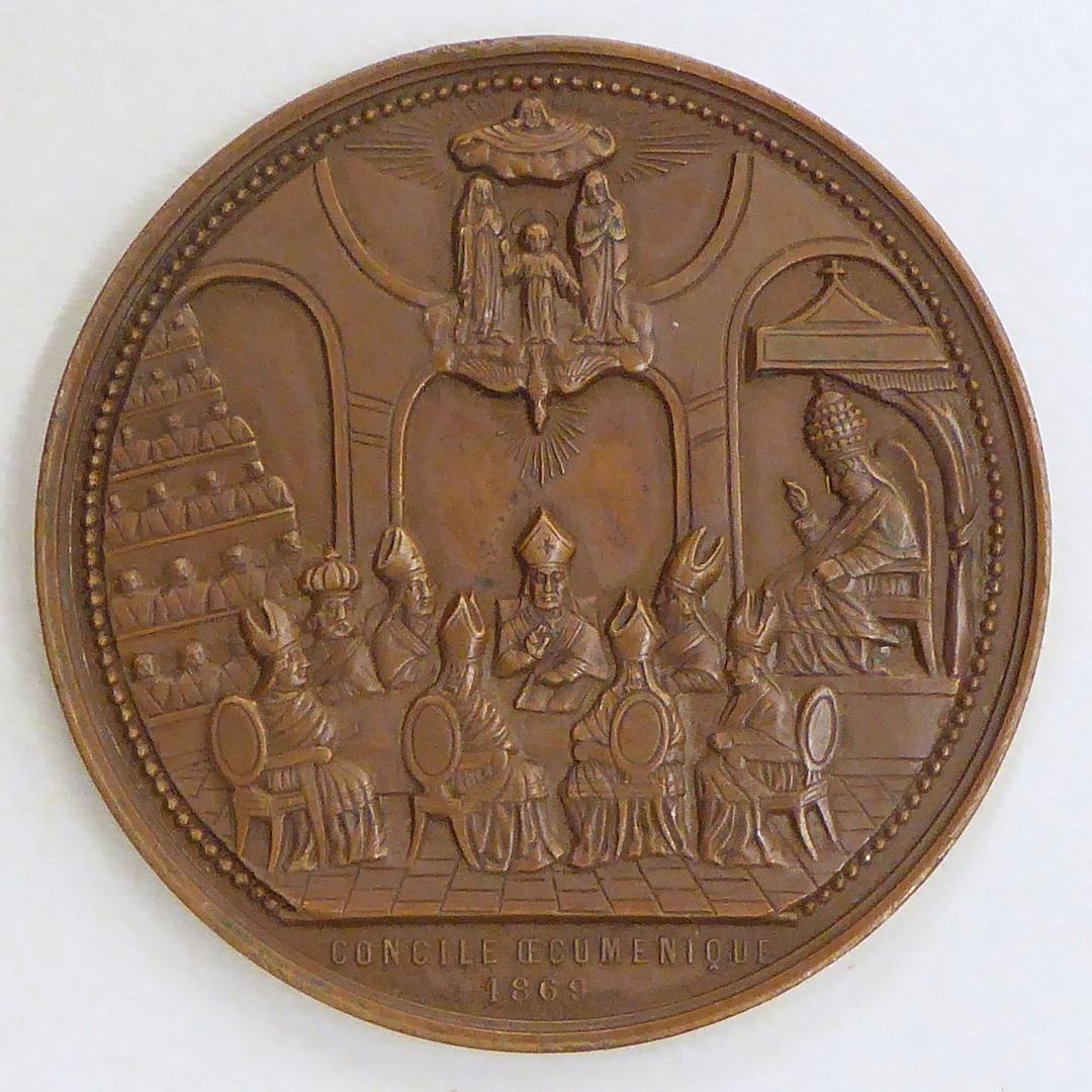 Gedenkpenning oecumenisch concilie met paus Pius IX (1846-1878) zegenend op wolken, kz. met "Concile eucumenique 1869"