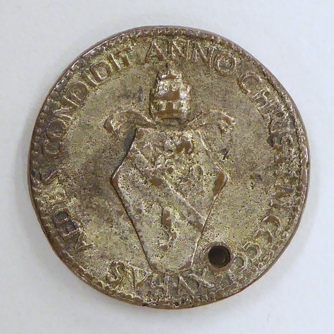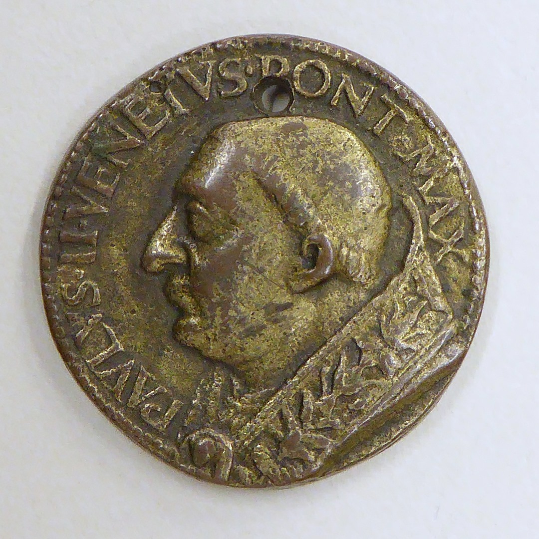 Pauspenning met portret paus Paulus II (1464-1471), kz. waardigheidstekens