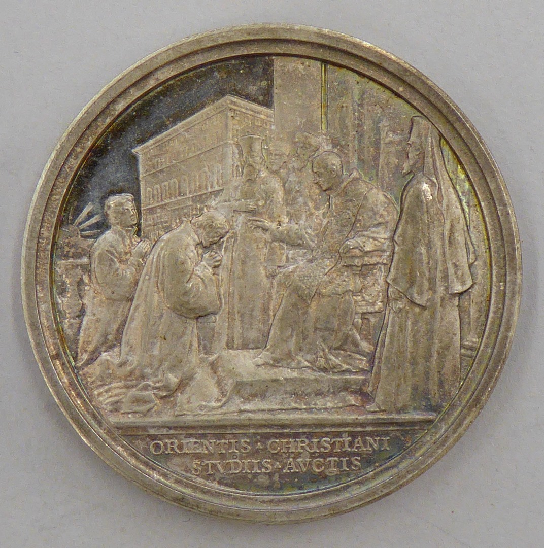 Pauspenning met portret paus Benedictus XV (1914-1922), kz. paus ontvangt oosterse prelaten