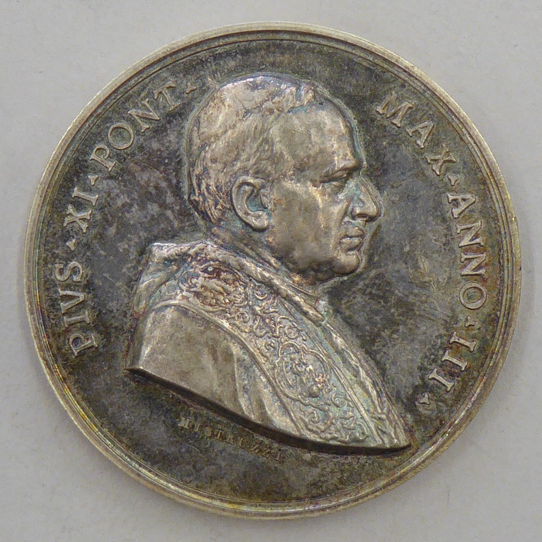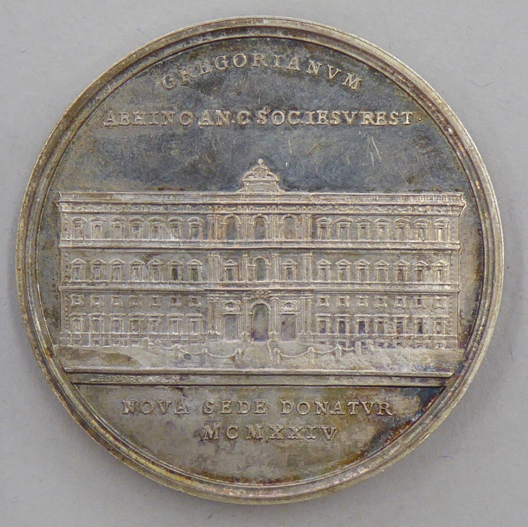 Pauspenning met portret paus Pius XI (1922-1939), kz. voorgevel Gregorianum