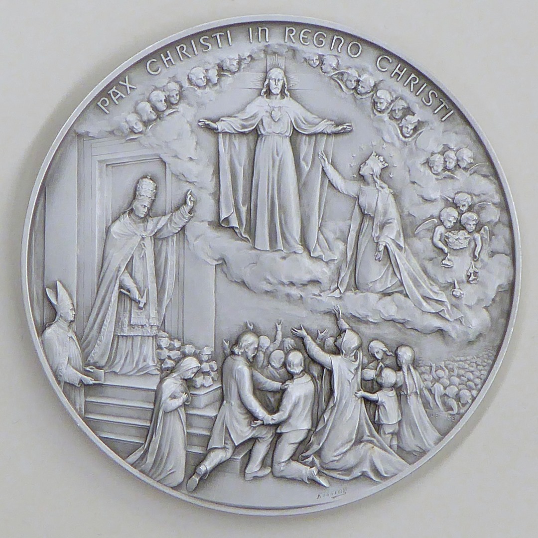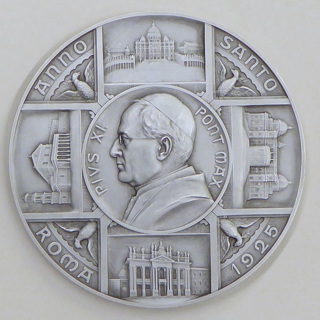 Pauspenning met portret paus Pius XI (1922-1939), met vier kerken Rome, kz. Christus, Maria, paus