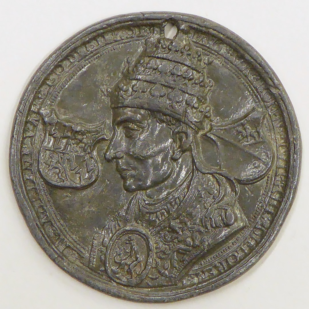 Pauspenning met portret paus Adrianus VI (1522-1523), afgietsel, kz. blanco