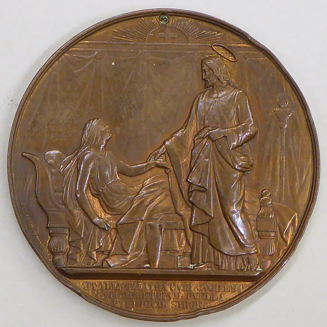 Legpenning 'Herstel bisschoppelijke hiërarchie in Nederland' met Christus geneest dochter Jairus