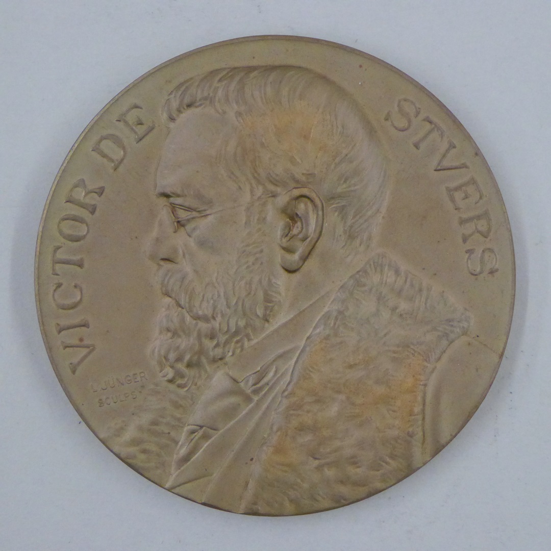 Vz.: VICTOR DE STVERS Kz.: 1875 JVLI 1900. REFERENDARIS. VOOR. KVNSTEN. EN. WETENSCHAPPEN.
