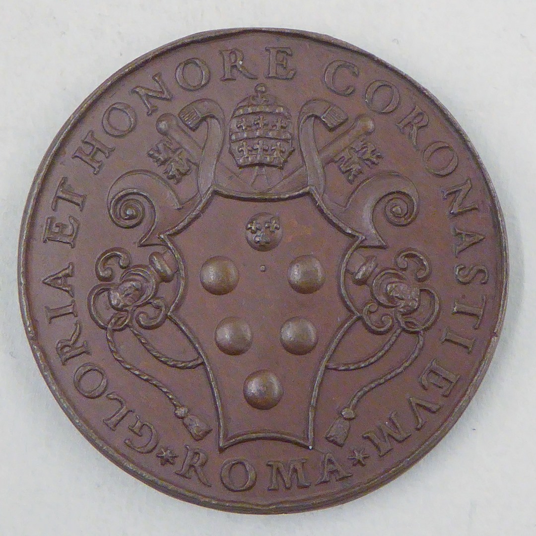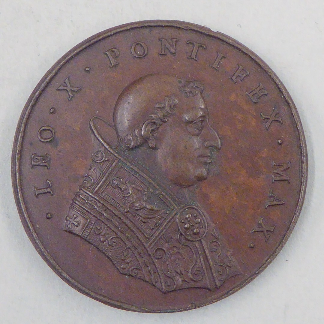 Pauspenning met portret paus Leo X (1513-1521), kz. pauselijk wapen