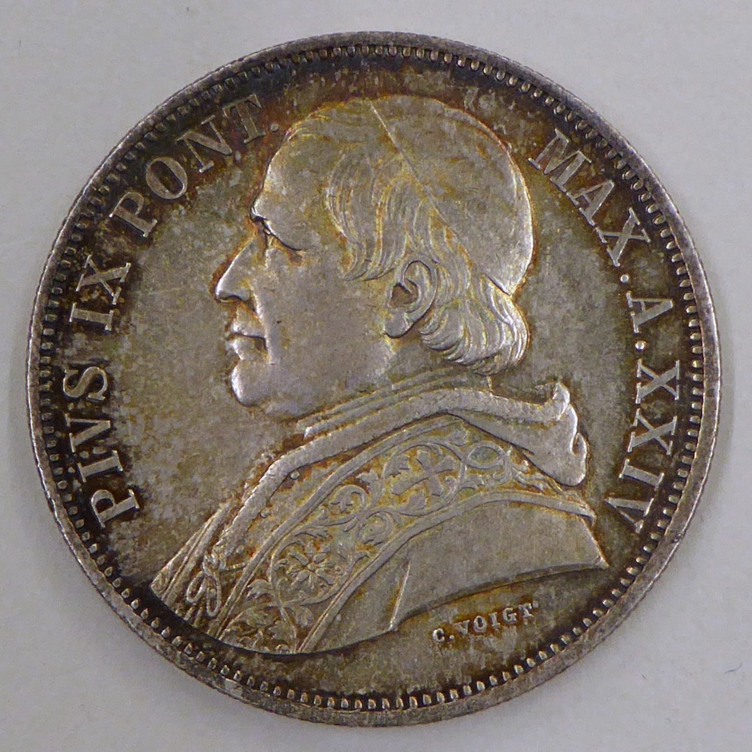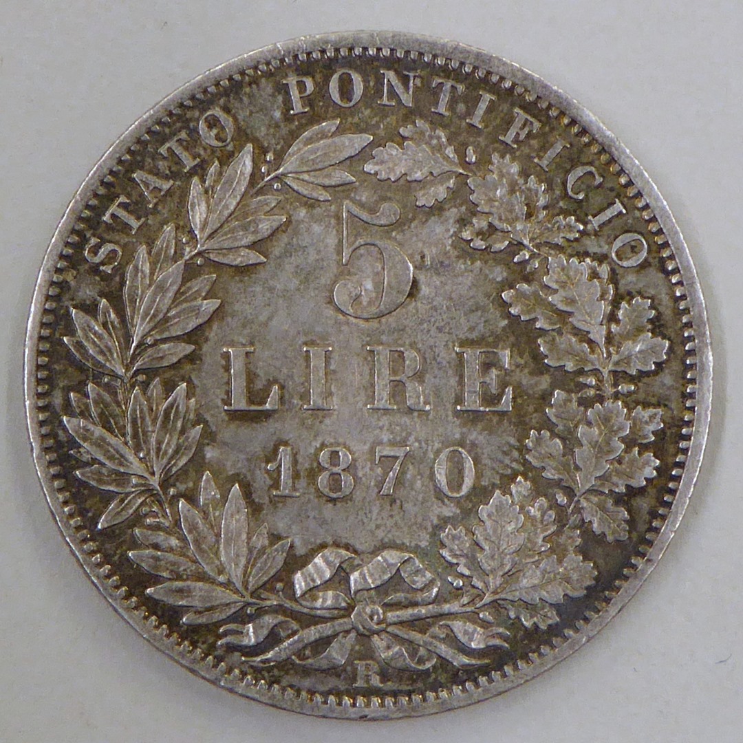 vz.: PIVS. IX PONT. MAX. A. XXIV. kz.: STATO PONTIFICIO 5 / LIRE /1870
