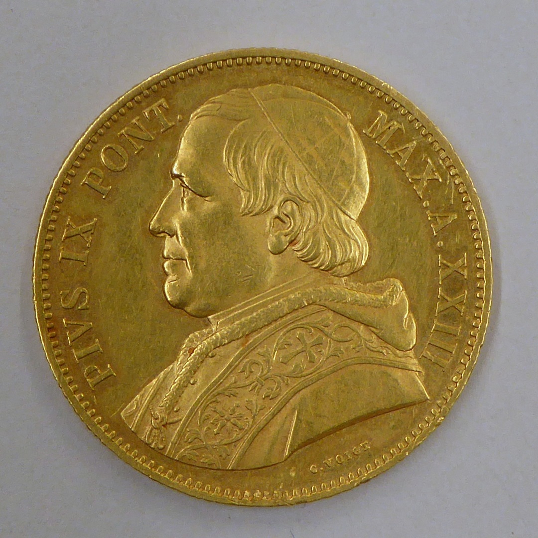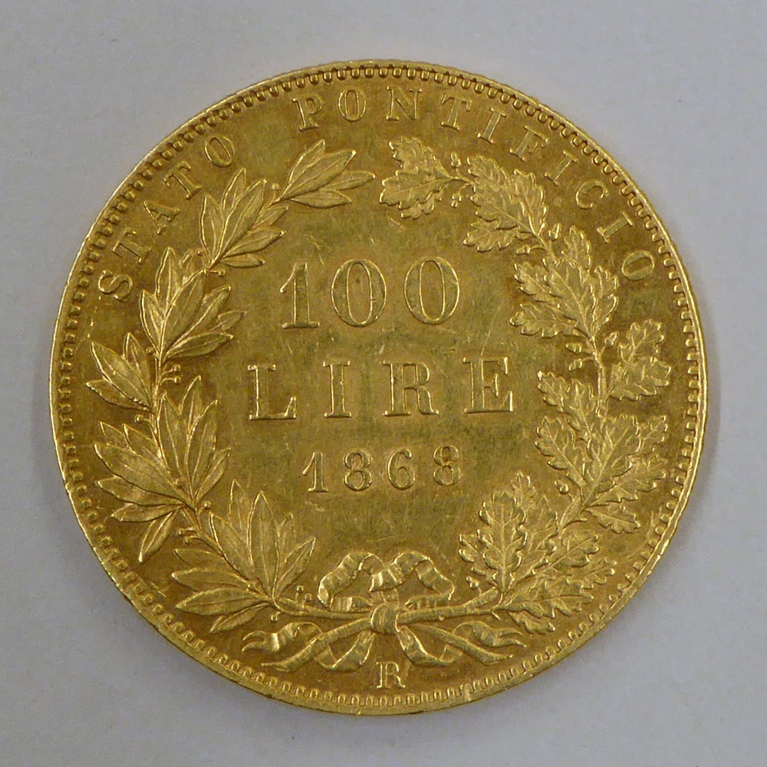 vz.: PIVS IX PONT. MAX. A. XXIII kz.: STATO PONTIFICIO 100 LIRE 1868