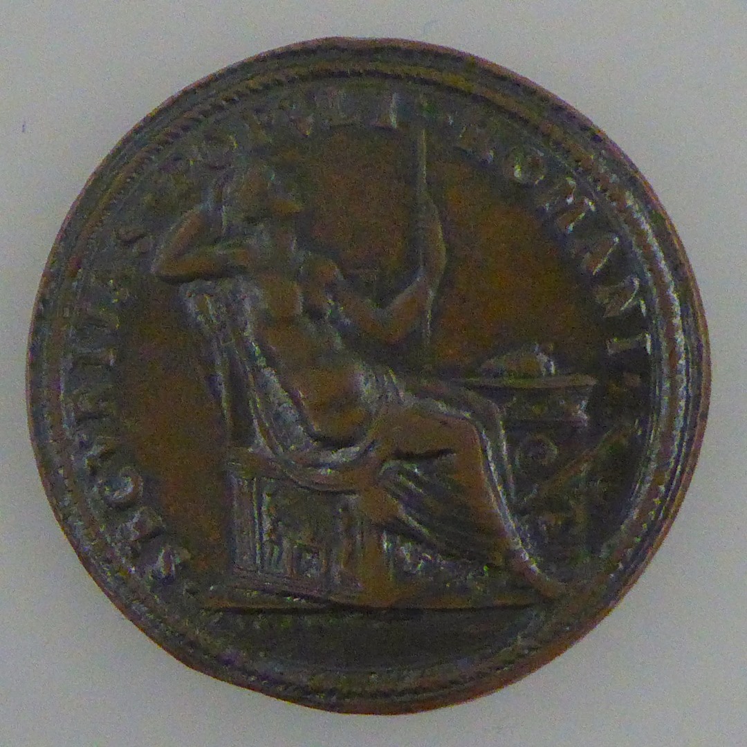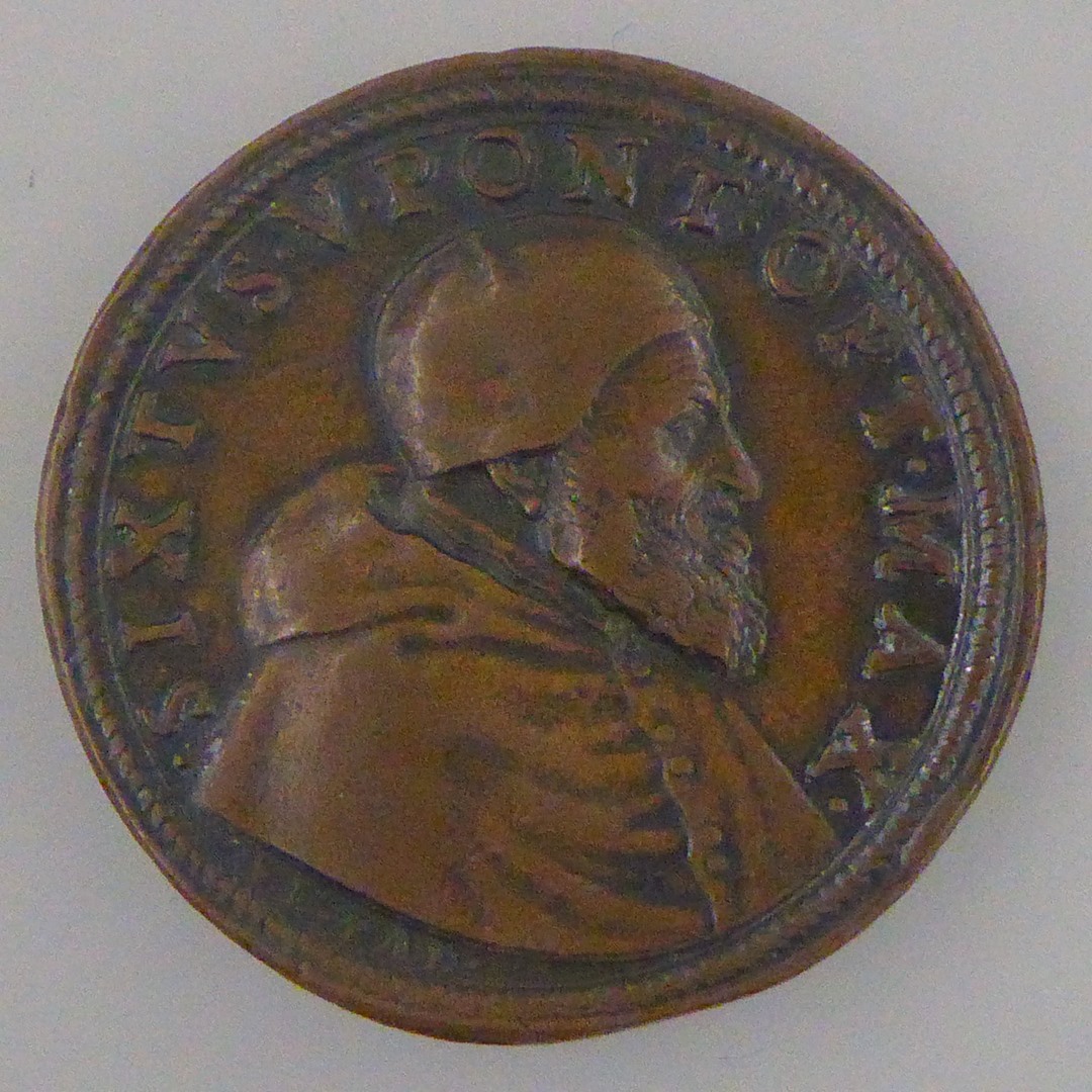 Pauspenning met portret paus Sixtus V (1585-1590), kz. allegorische vrouw "Securitas..."