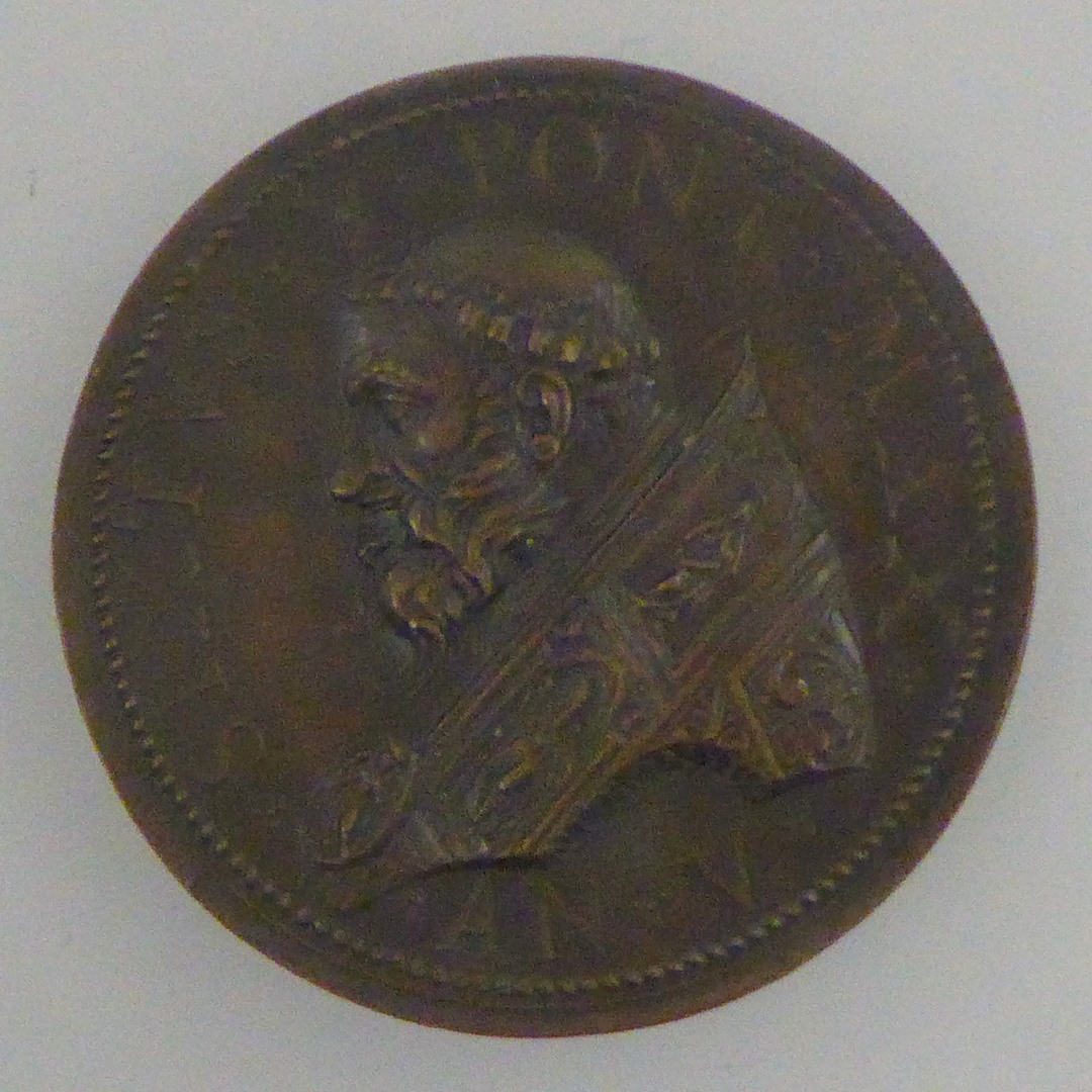 Pauspenning met portret paus Sixtus V (1585-1590), kz. kerk B. Maria di populo