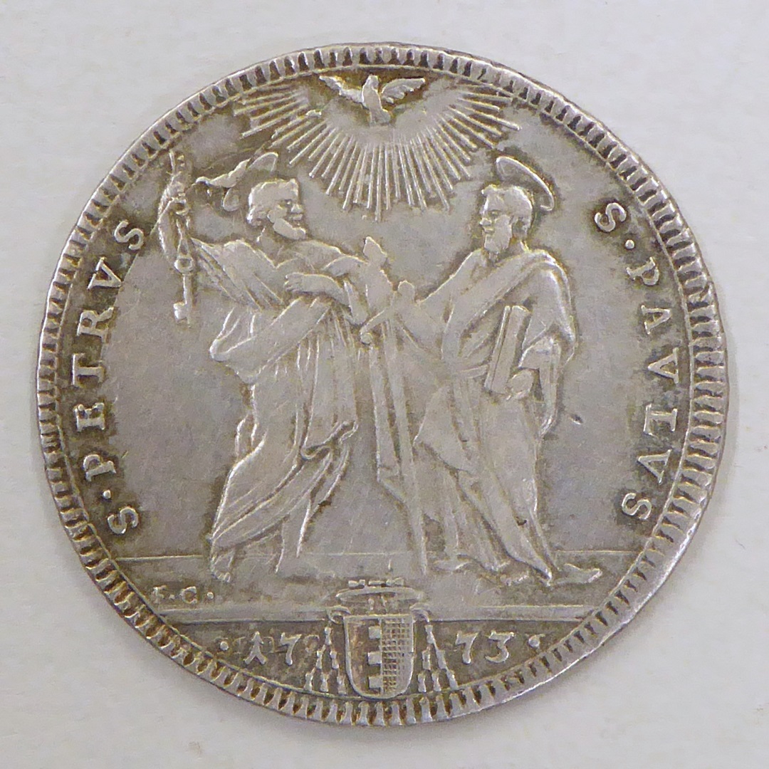 Testone paus Clemens XIV met wapen, kz. St. Petrus en St. Paulus