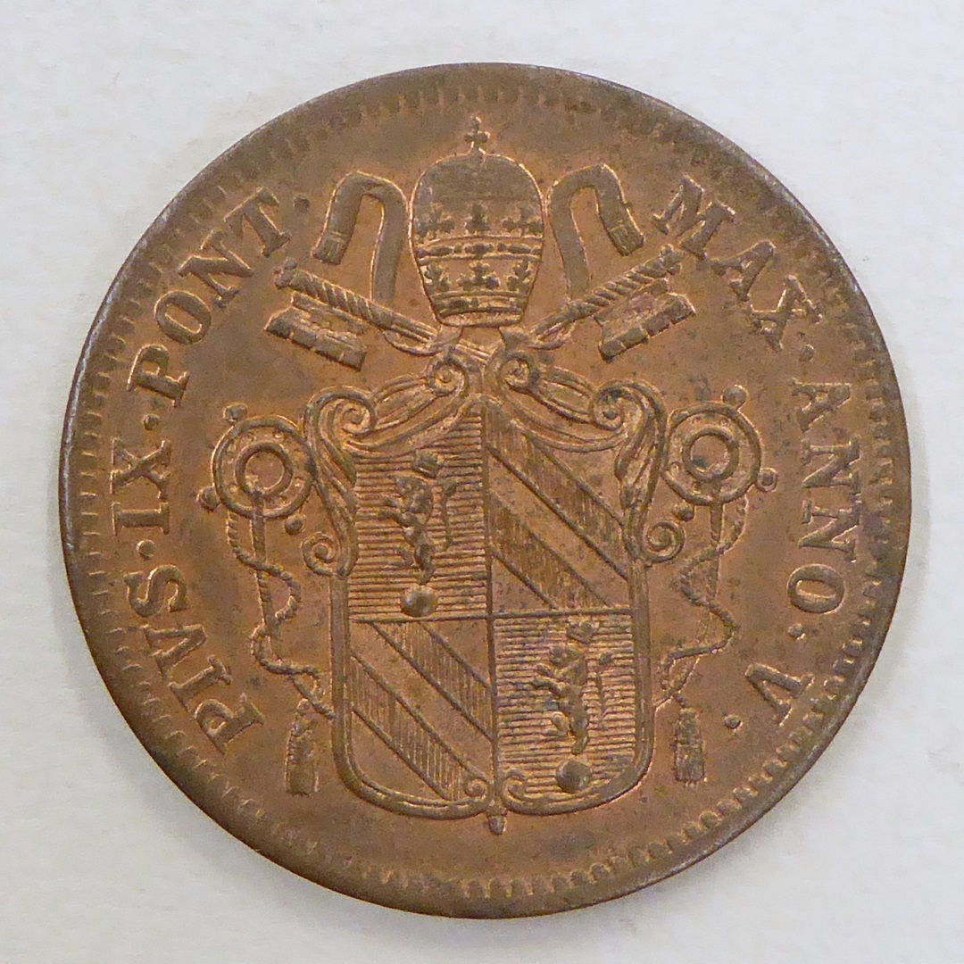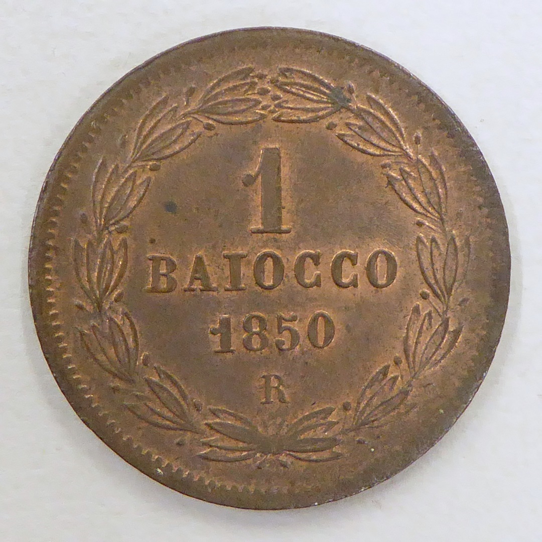 vz.: PIVS. IX. PONT. MAX. ANNO. V. kz.: 1 / BAIOCCO / 1850