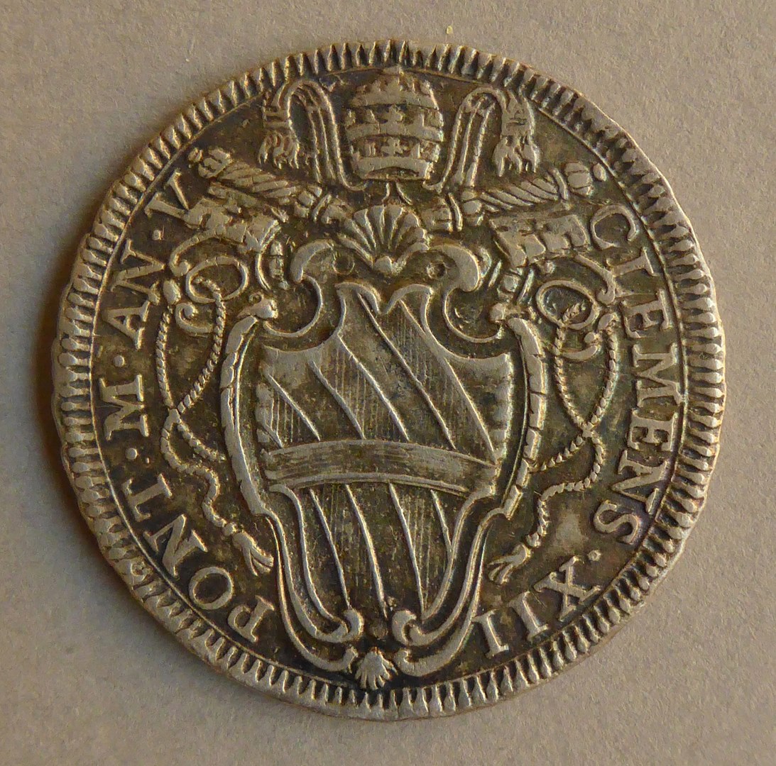 Testone paus Clemens XII met wapen, kz. tekst