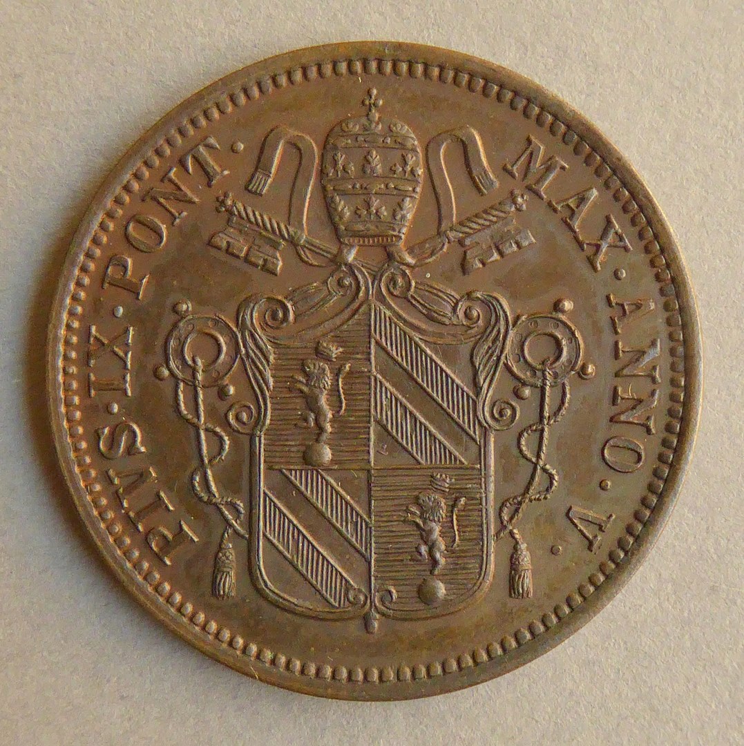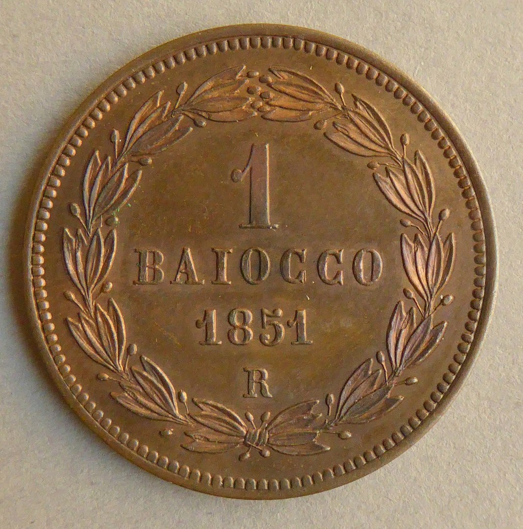 vz.: PIVS. IX. PONT. MAX. ANNO. V. kz.: 1 / BAIOCCO / 1851