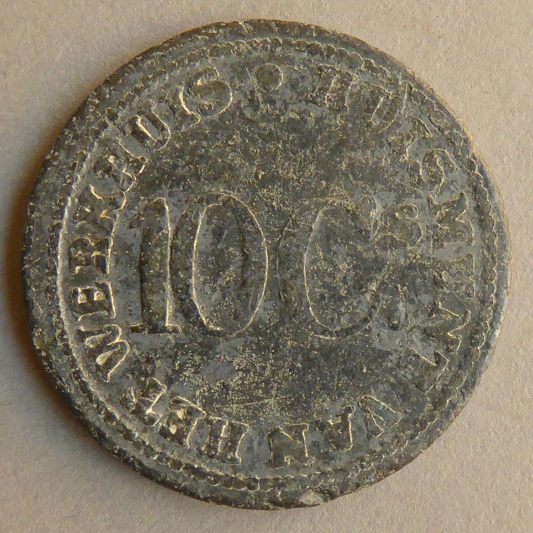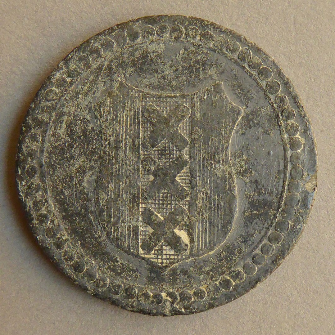 Huismunt van het Werkhuis te Amsterdam met stadswapen, kz. met "100" en randschrift