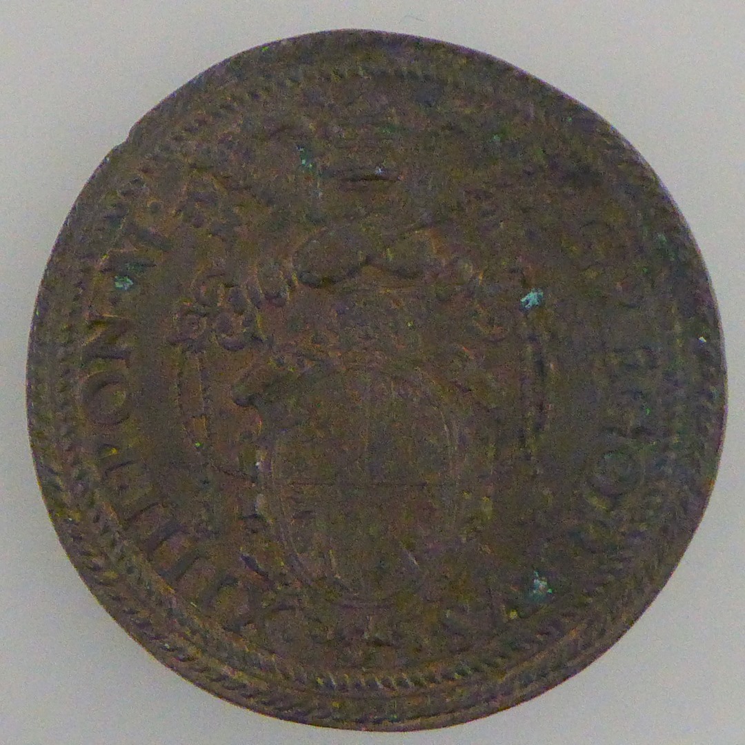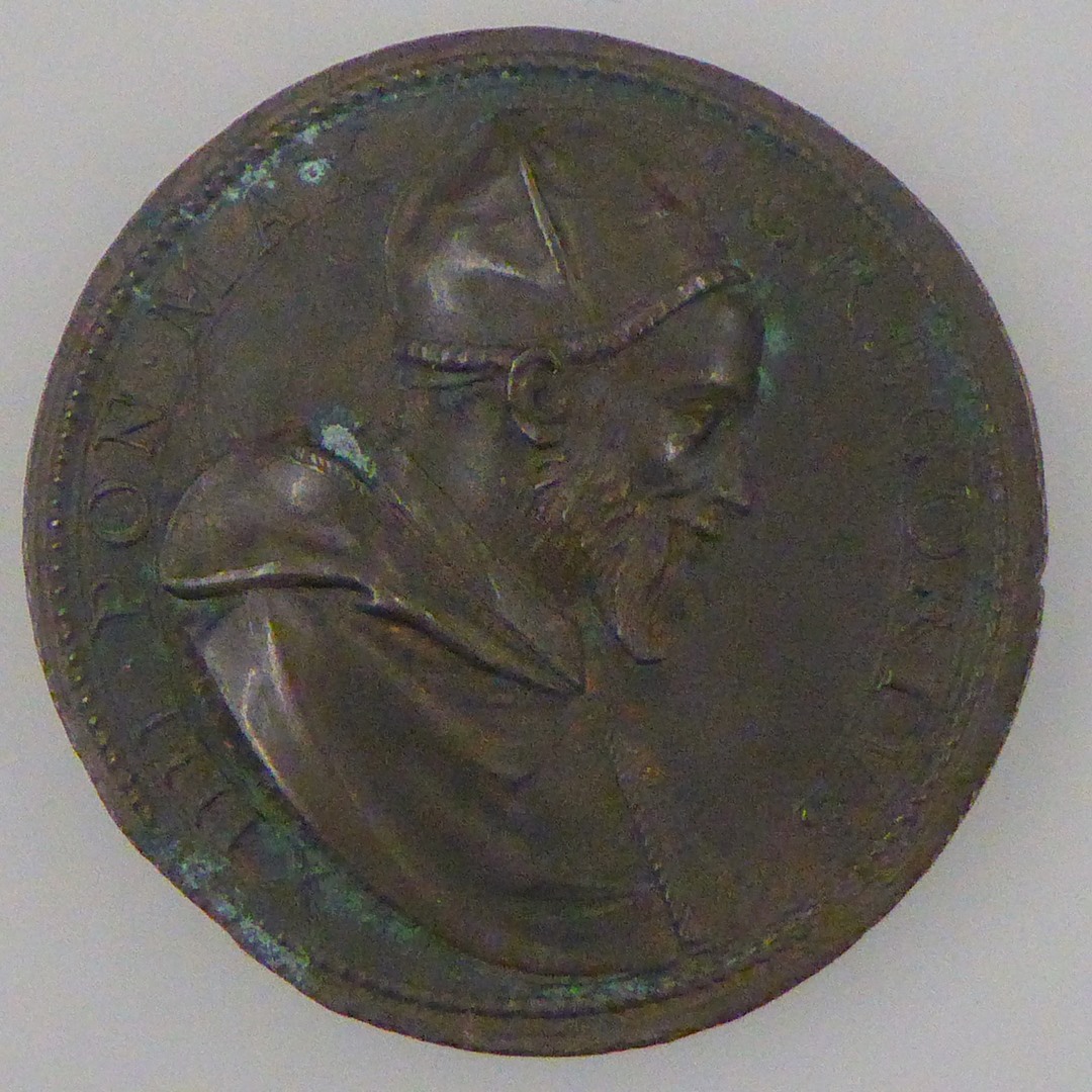Pauspenning met portret paus Gregorius XIV (1590-1591), kz. waardigheidstekens
