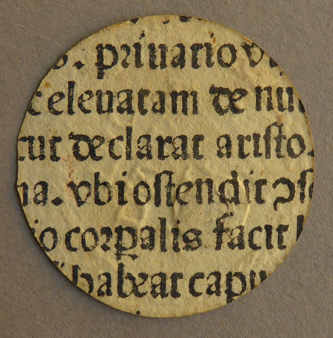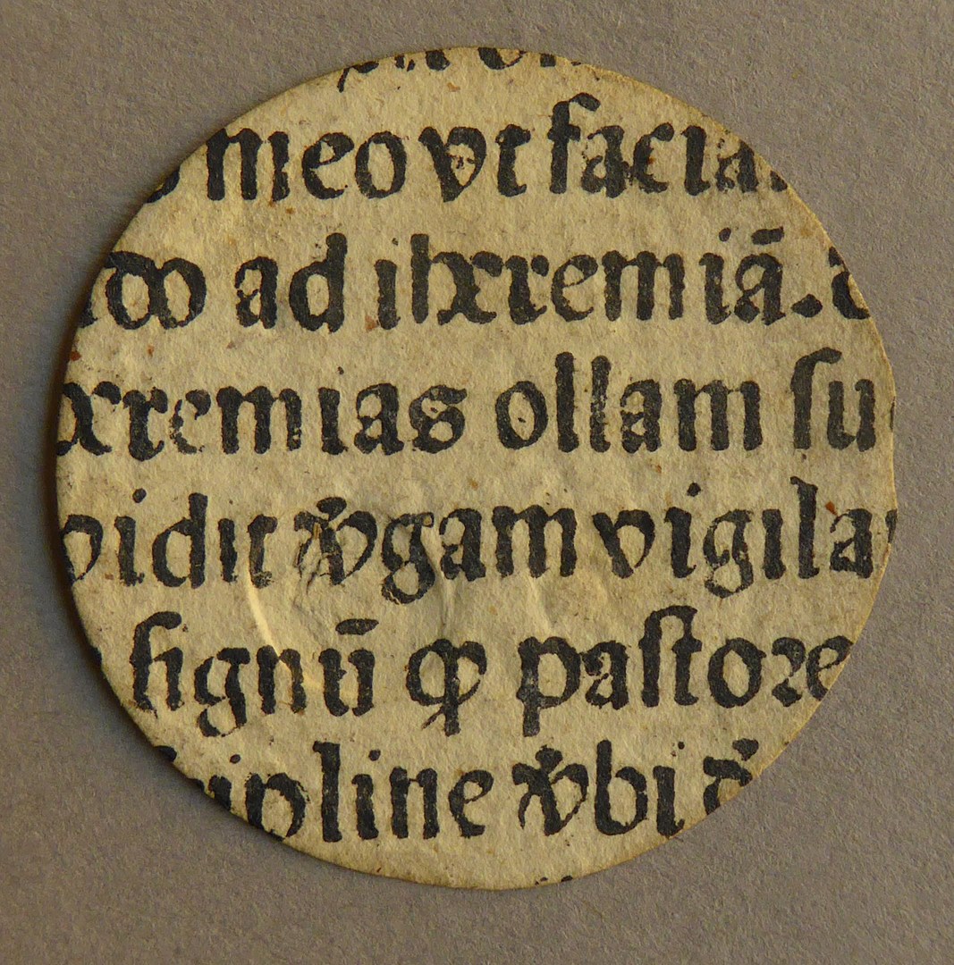 Onderdeel noodmunt Leiden met klop, Leids beleg, met Latijnse tekst, kz. Latijnse tekst