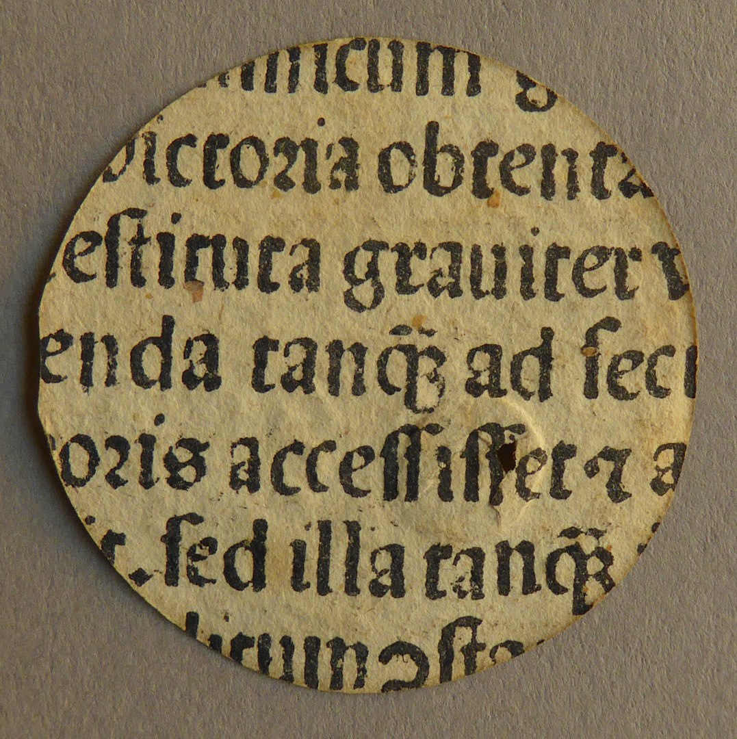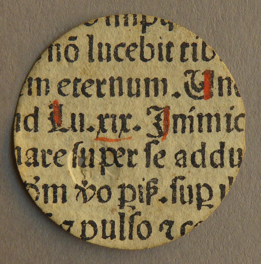Onderdeel noodmunt Leiden met klop, Leids beleg, met Latijnse tekst, kz. Latijnse tekst