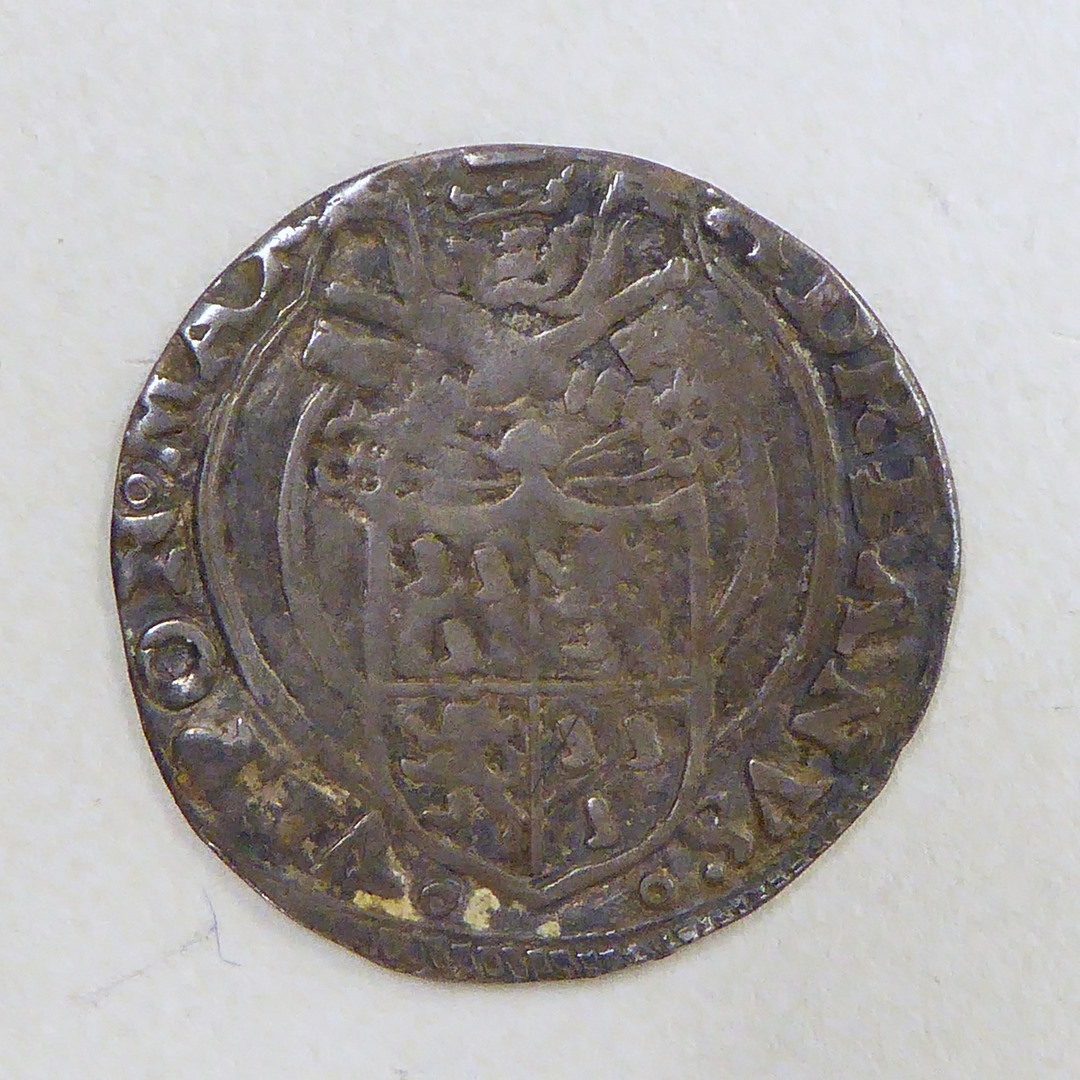 Halve giulio paus Adriaan VI (1522-1523) met wapen, kz. St. Petrus