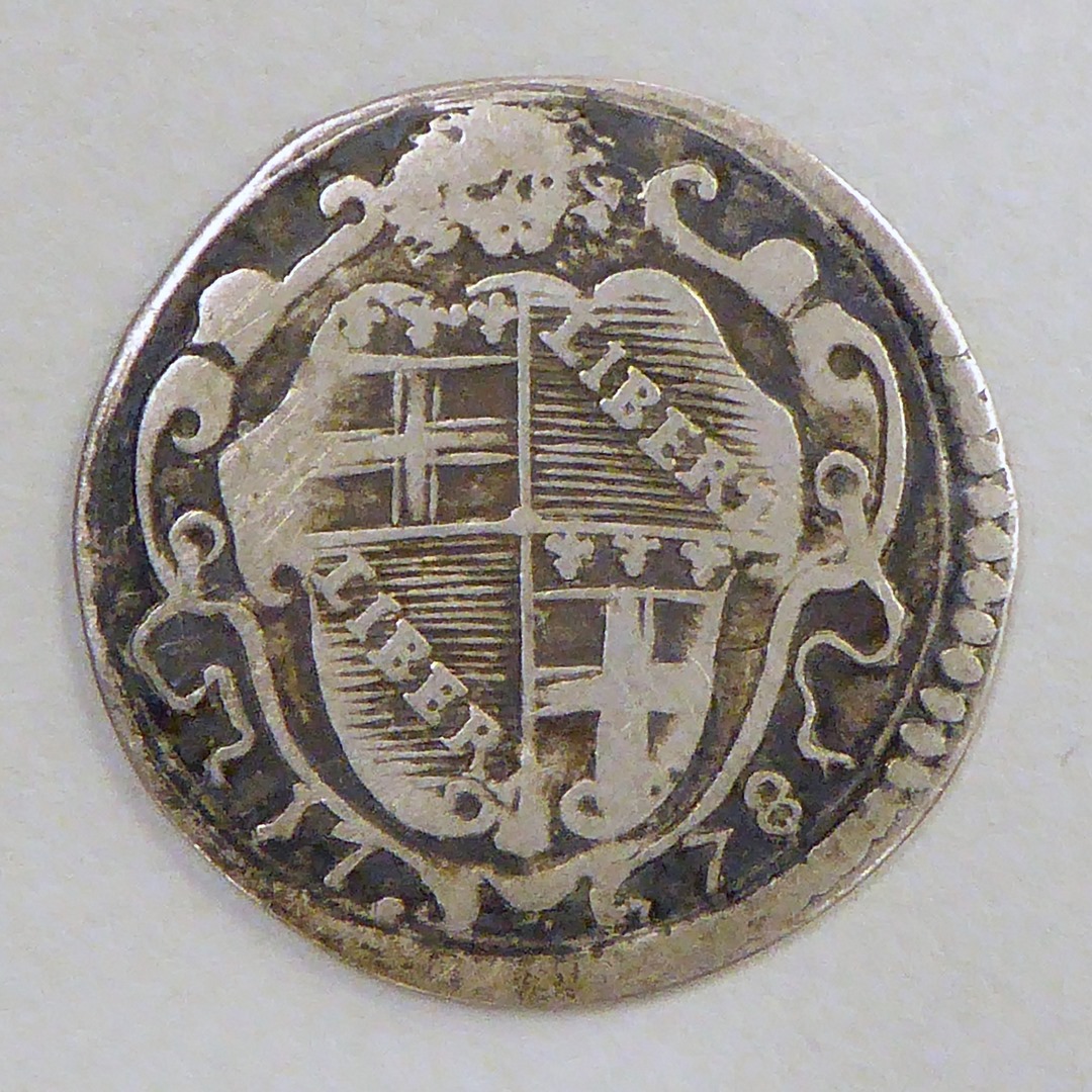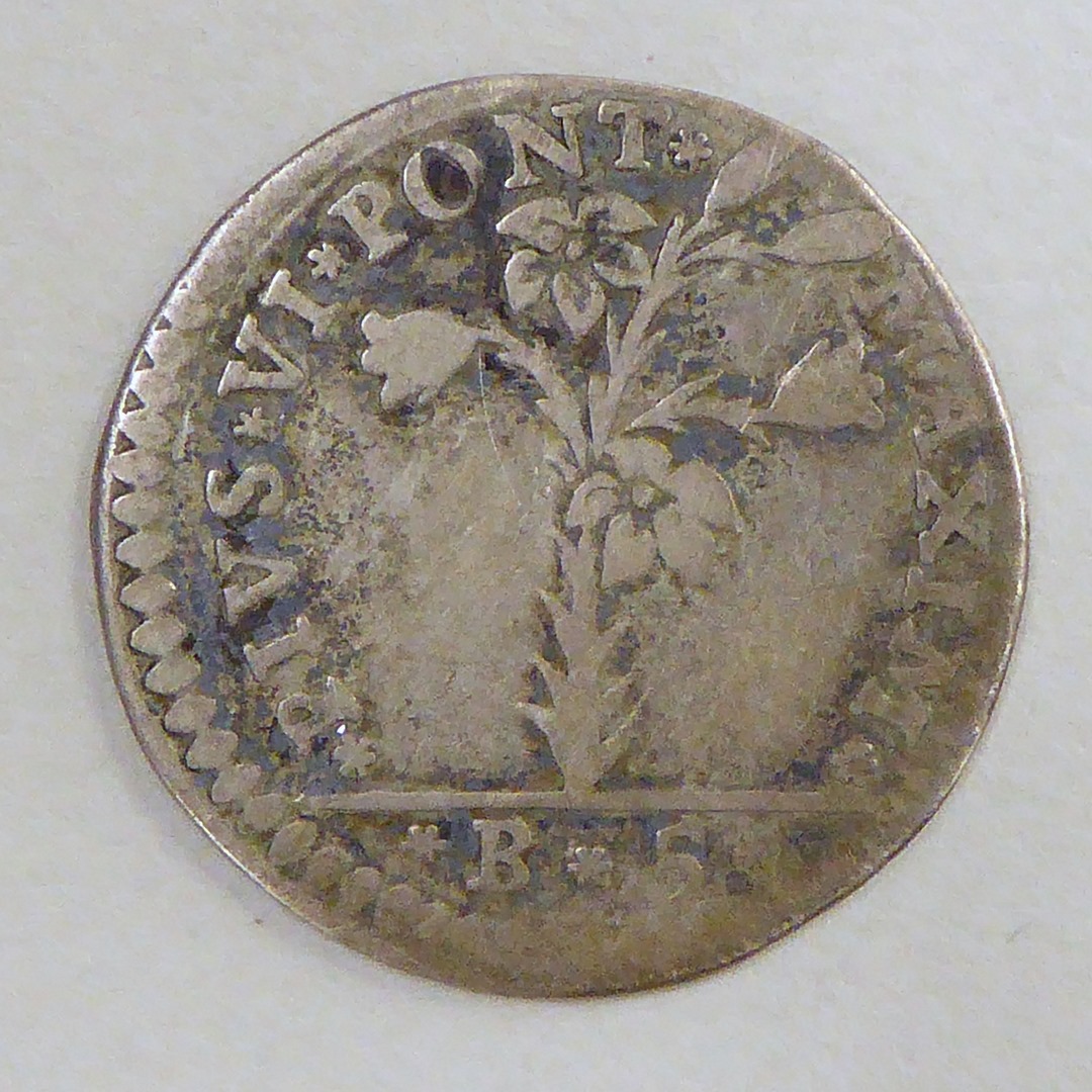 Carlino paus Pius VI (1775-1799) met lelie, kz. wapen Bologna