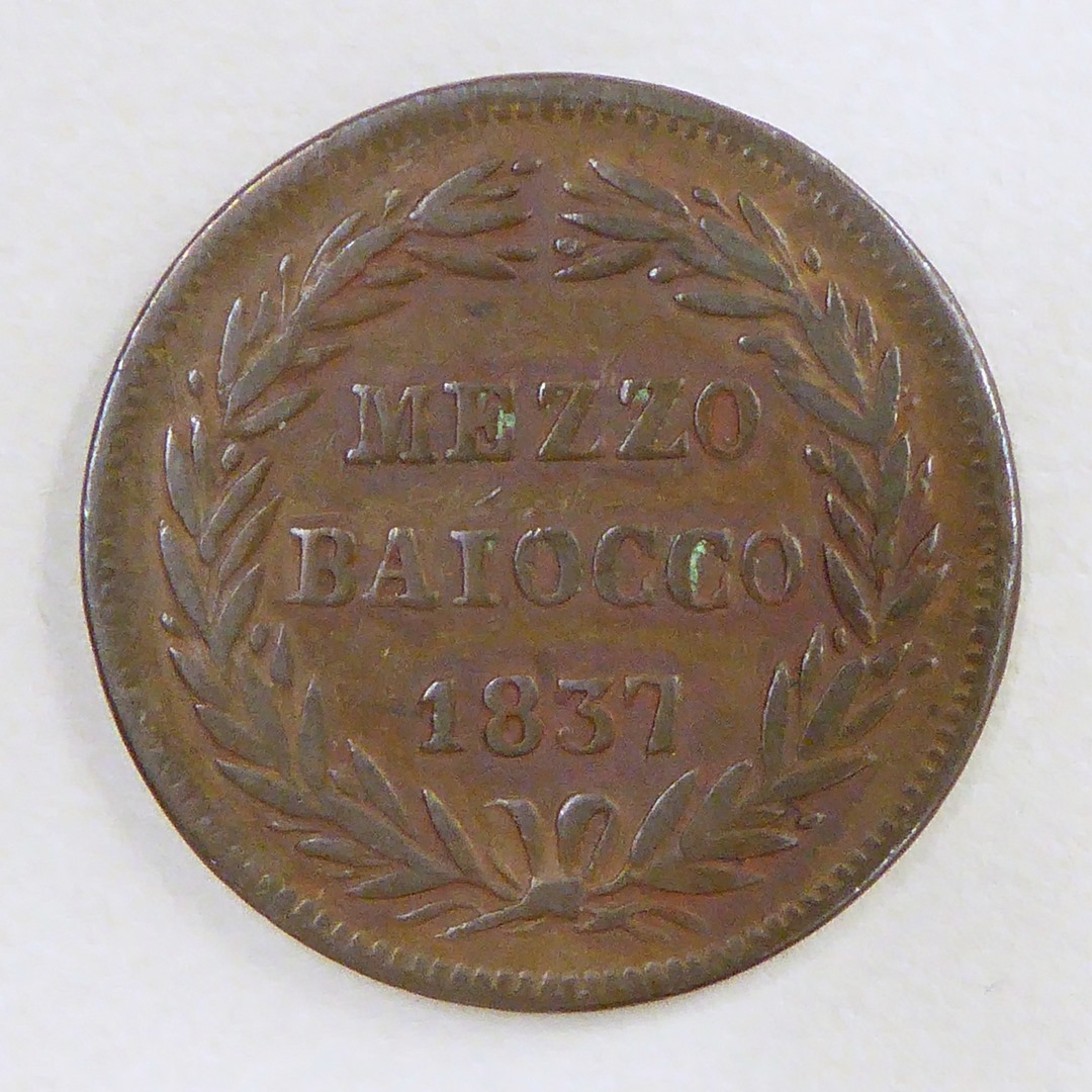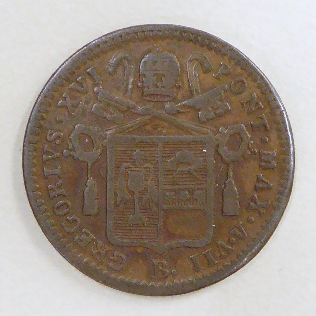 Halve baiocco paus Gregorius XVI (1831-1846) met wapen, kz. tekst