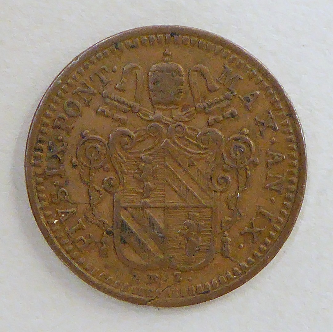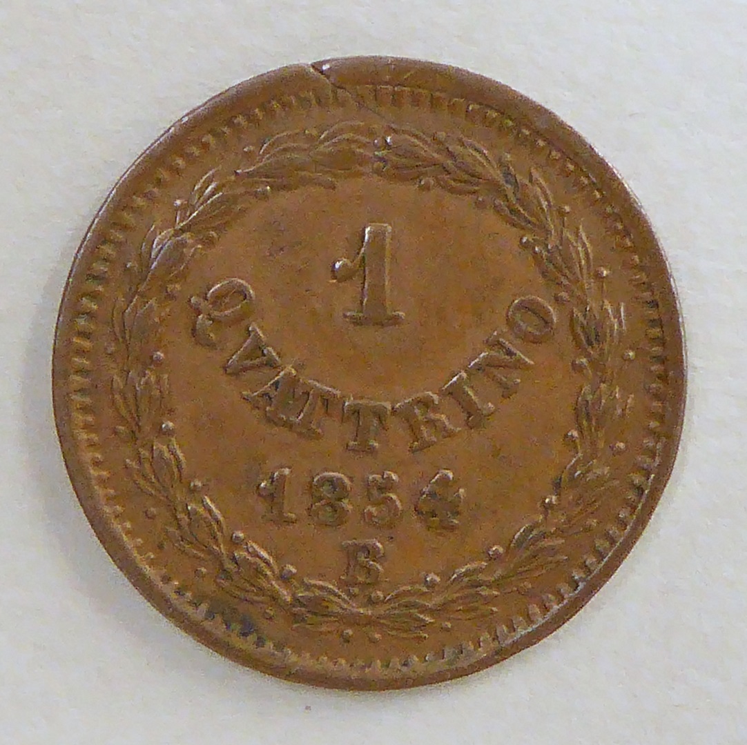 Quattrino paus Pius IX (1846-1878) met wapen, kz. tekst