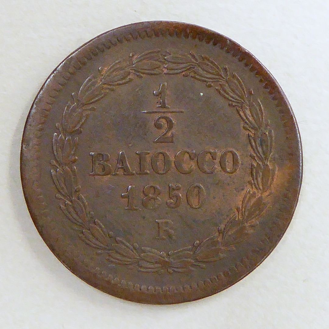 vz.: PIVS. IX. PONT. MAX. ANN. V. kz.: ½ BAIOCCO / 1850 / R