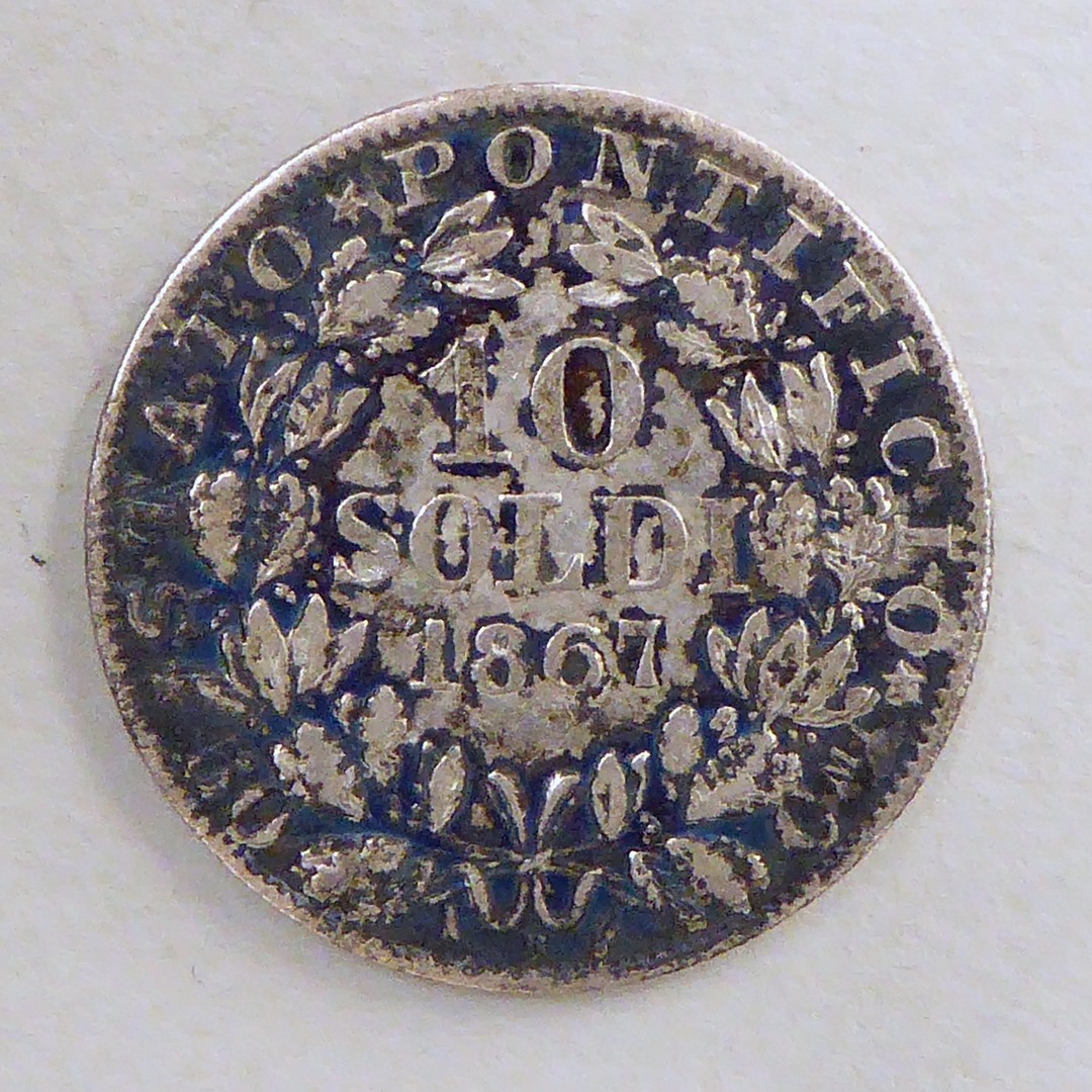 vz.: PIVS. IX. PON. MAX. A. XXII kz.: STATO PONTIFICIO 10 / SOLDI / 1867