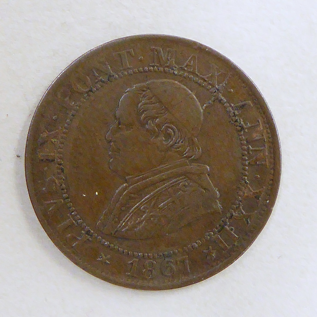 Halve soldo met portret Pius IX (1846-1878), kz. tekst