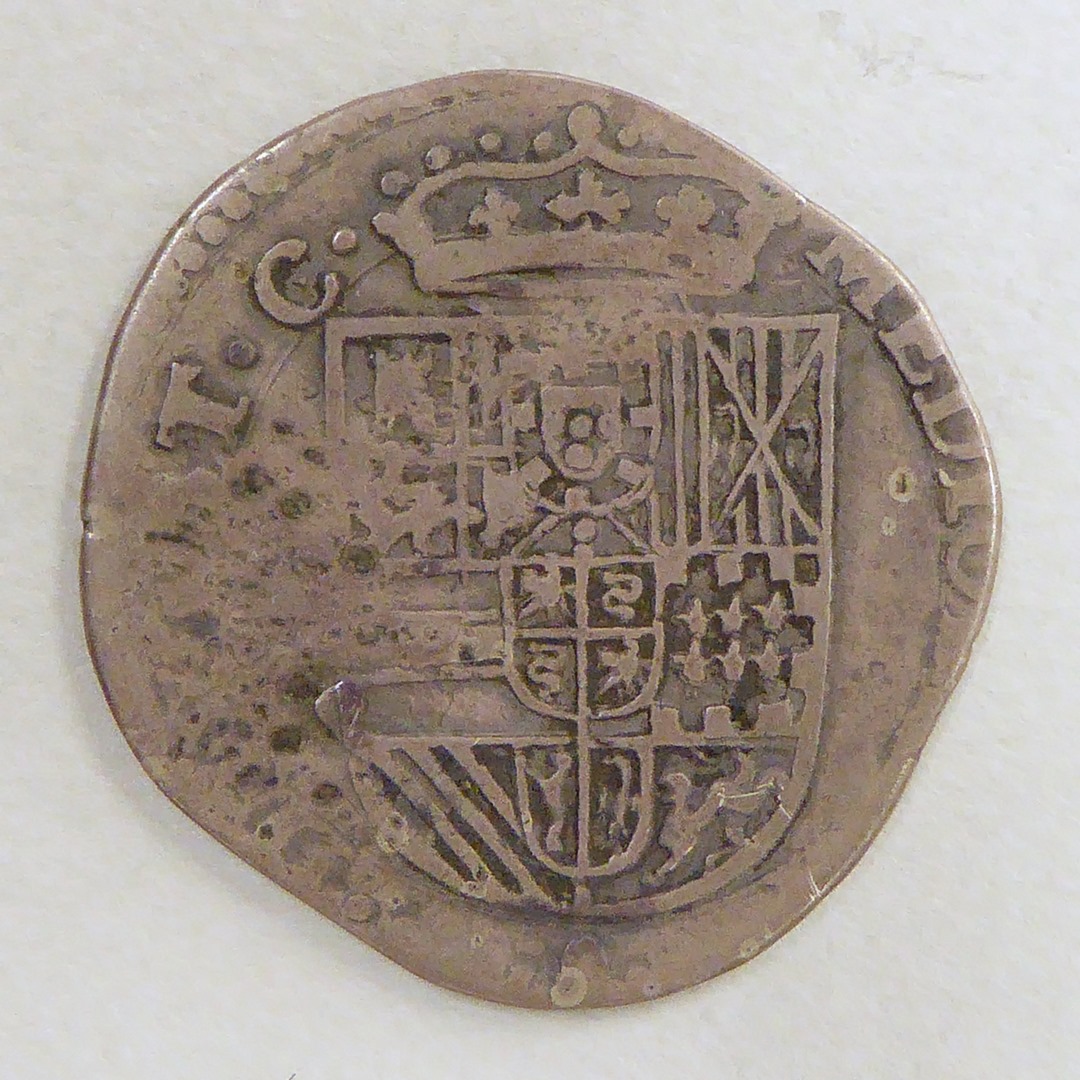 Munt Milaan, met portret Karel II(?), kz. wapen
