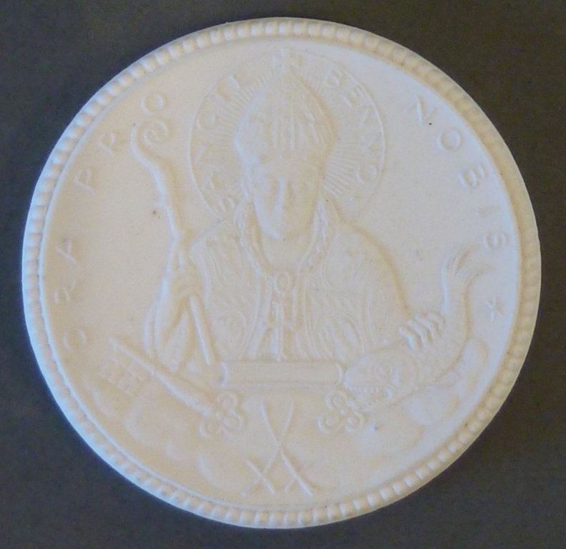 Herdenkingsplaquette heroprichting bisdom Meissen met H. Benno, kz. met "Wiedererrichtung ... 1927"