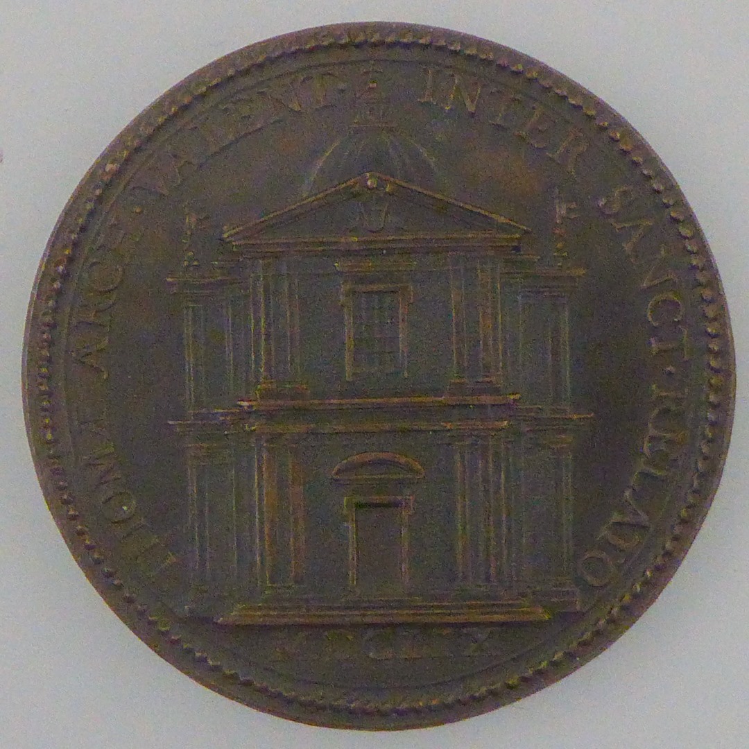 Pauspenning met portret paus Alexander VII (1655-1667), kz. voorgevel St. Thomaskerk, 1659