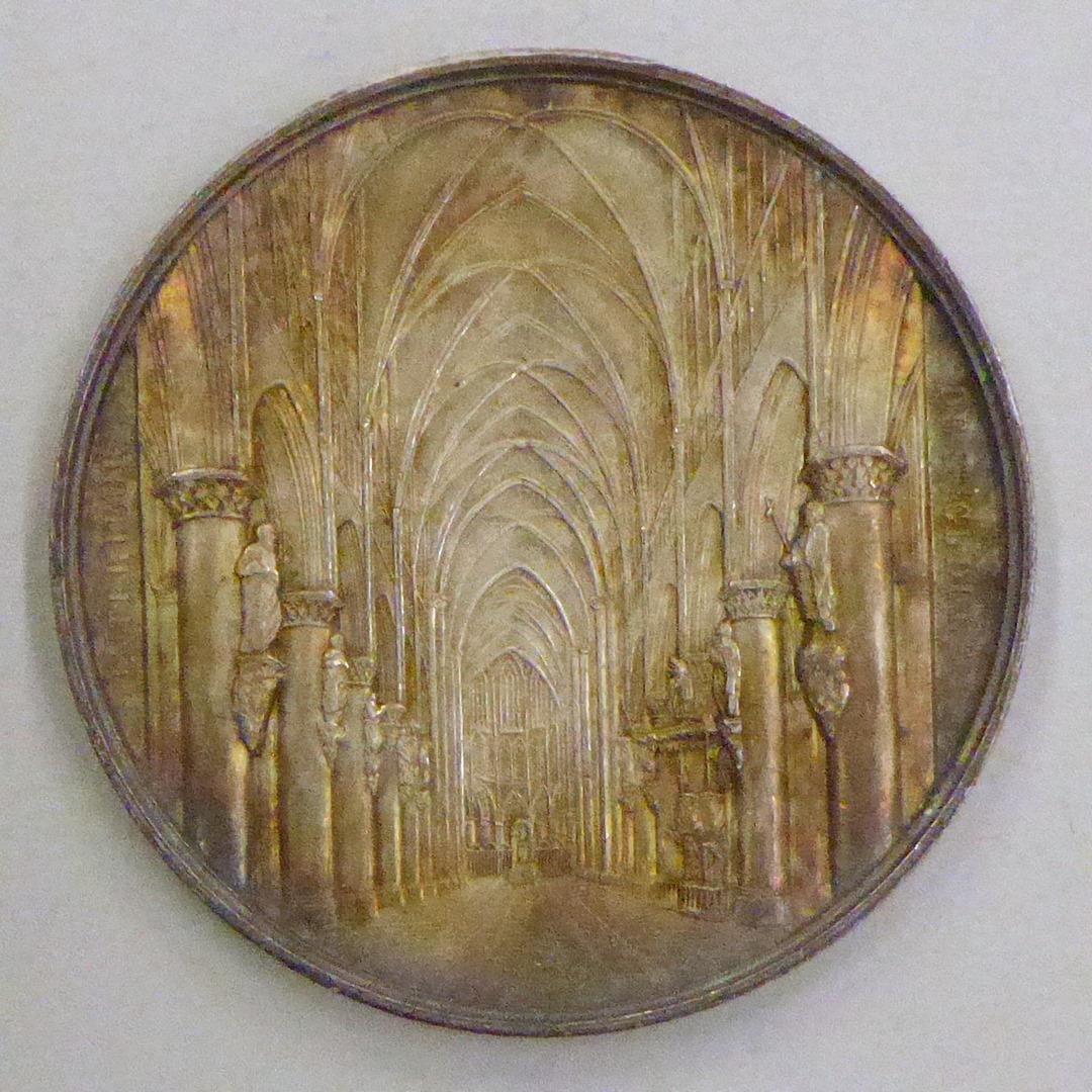 vz.: ÉGLISE COLLEGIALE DE BRUXELLES / DEDIÉ A ST. MICHEL ET A STE. GUDULE PAR LAMBERT II COMTE DE LOUVAIN ET DE BRABANT 1047 (---) kz.: INTERIEUR DE STE GUDULE