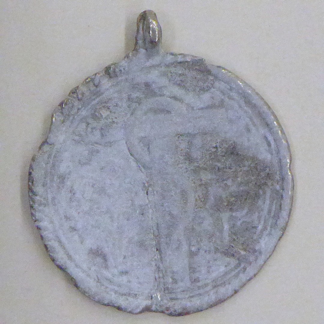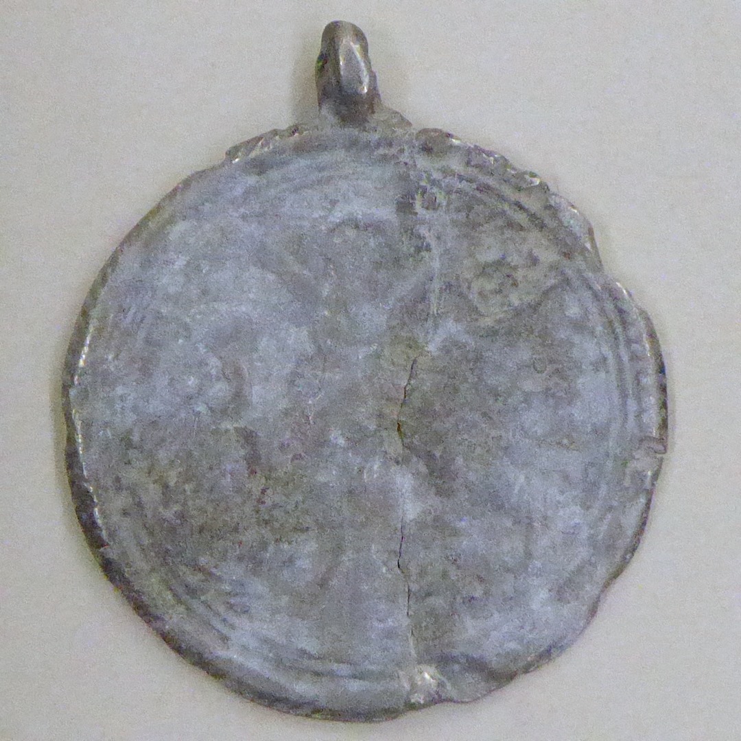 Draagpenning met koperen slang, kz. gekruisigde Christus