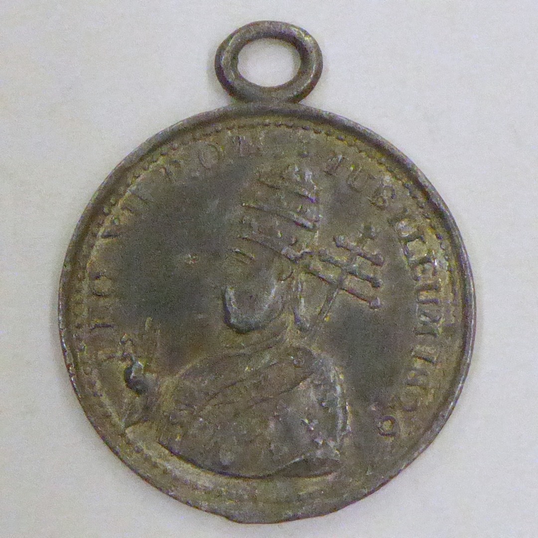 Bedevaartspenning O.L. Vrouw van Loreto, kz. portret van paus Leo XII met tiara