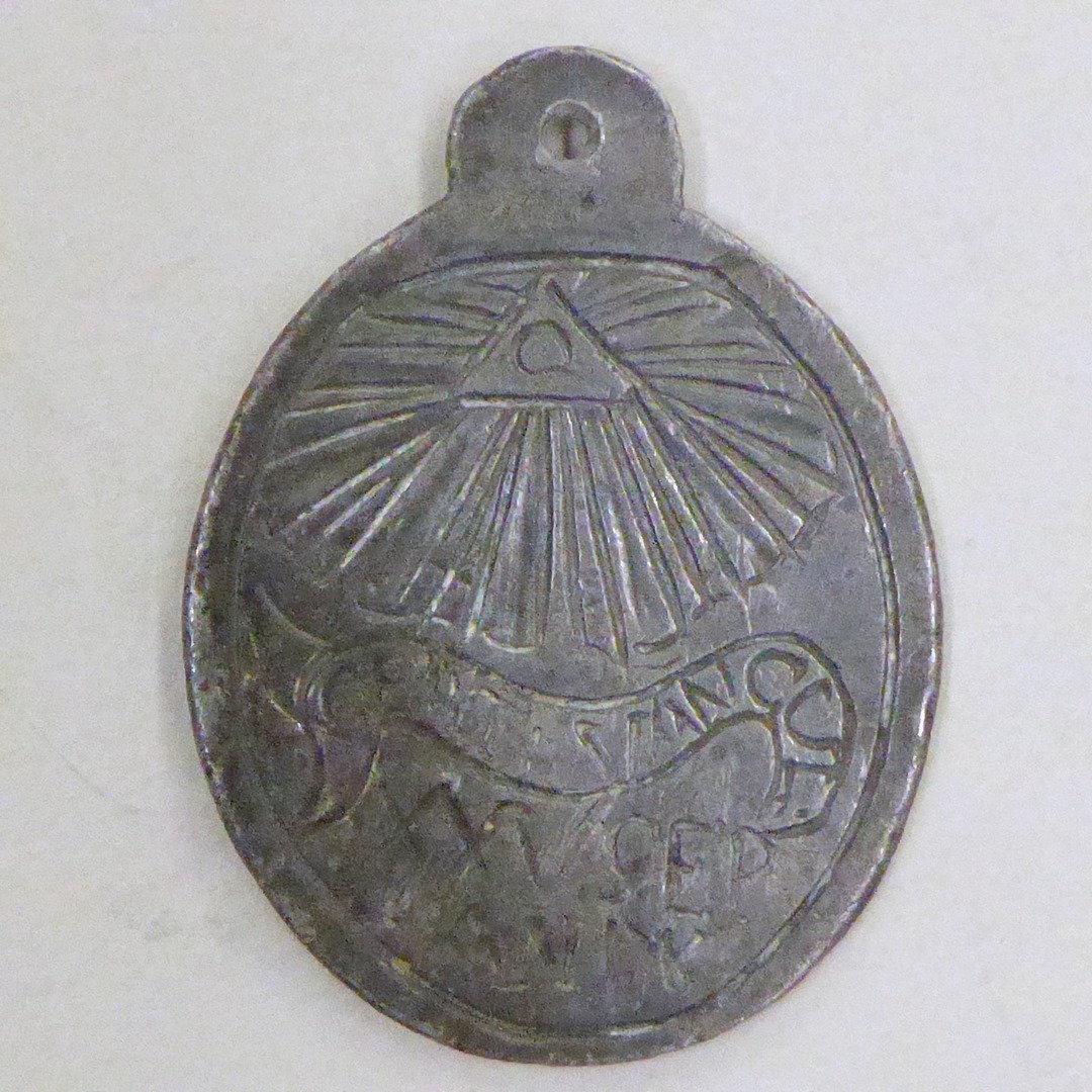 Draagpenning 50-jarig kloosterfeest zr. G. van Cul met kronende engel, kz. Alziend Oog met tekst