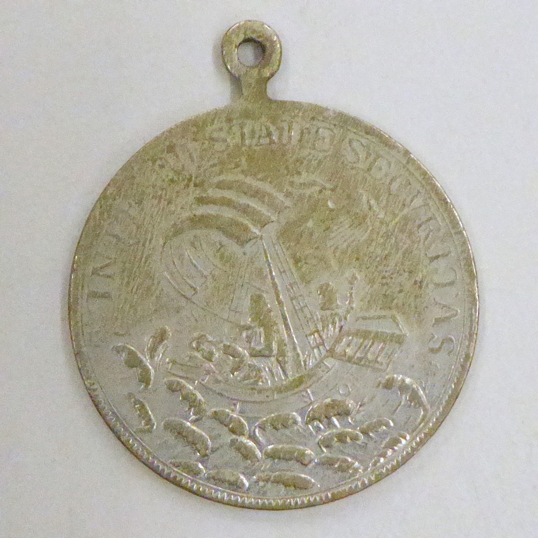 Devotiepenning met Christus slapend op het meer, kz. St. Joris en de draak