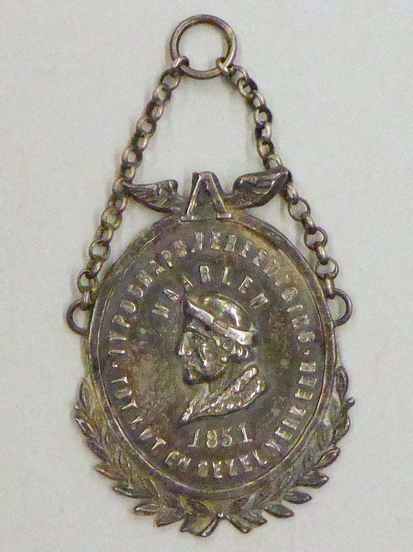 Lidmaatschapsteken typografische vereniging Tot nut en gezelverkeer Haarlem, met L.J. Coster
