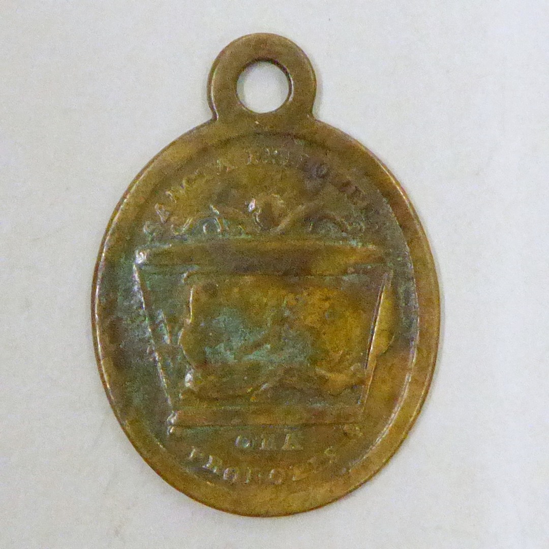 Draagpenning met schrijn van St. Philomena, kz. lauwerkrans en pijlen