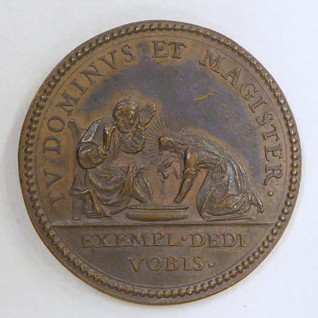 Pauspenning met portret paus Clemens IX (1667-1669), kz. voetwassing