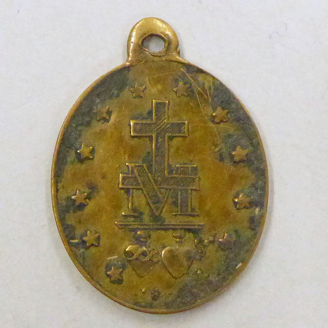Draagpenning Maria van de Wonderdadige Medaille, kz. H. Harten van Maria en Jezus en monogram