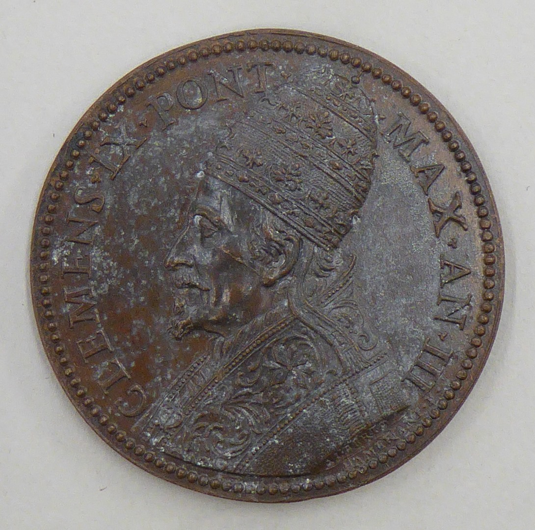 Pauspenning met portret Clemens IX (1667-1669), kz. twee nieuwe heiligen