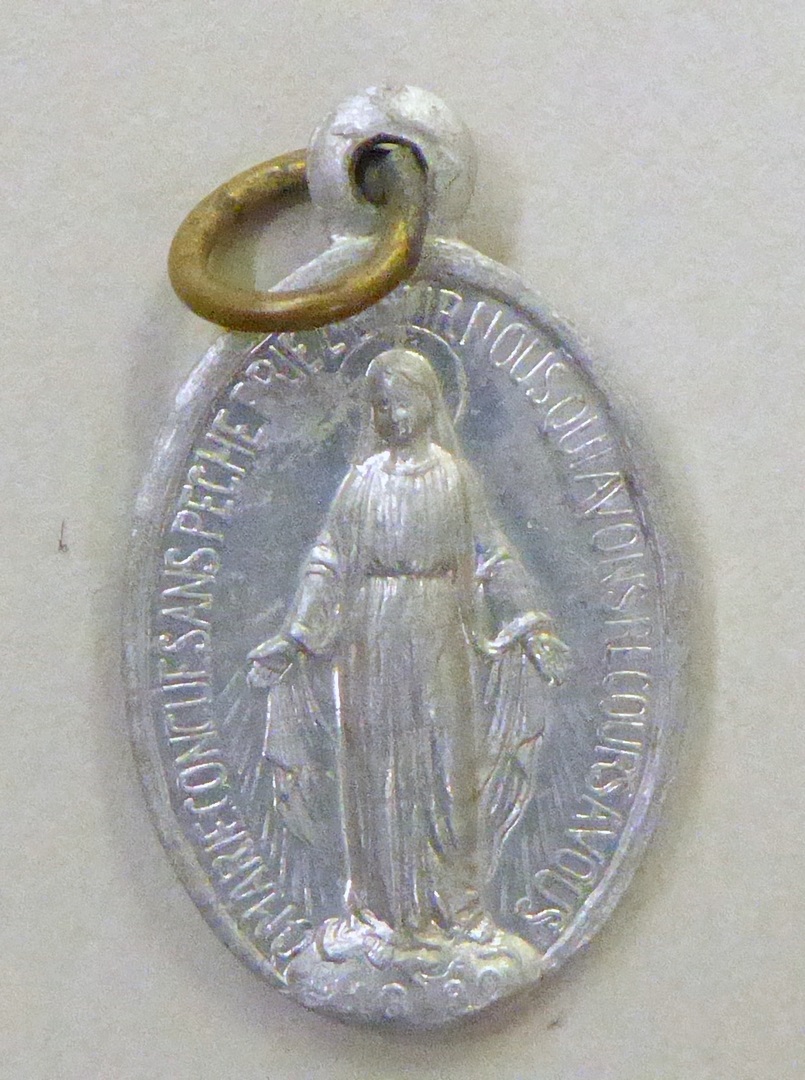 Draagpenning Maria van de Wonderdadige Medaille, kz. H. Harten van Christus en Maria en monogram