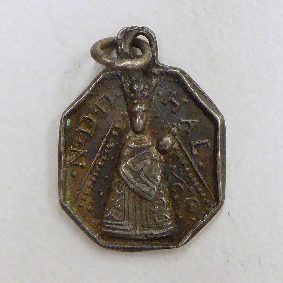 Bedevaartspenning, achthoekig, O.L. Vrouw van Halle, kz. Christus als Salvator Mundi