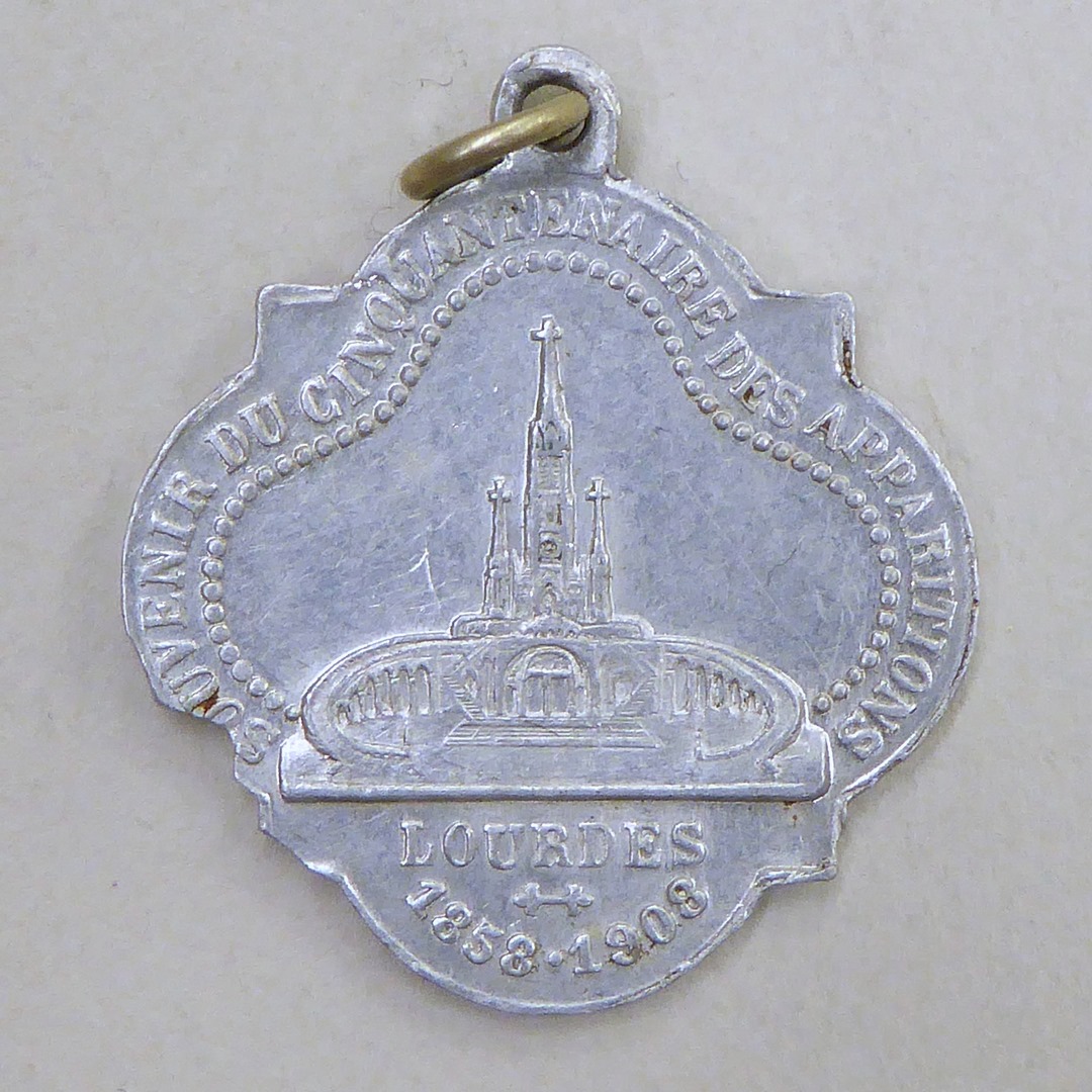 Bedevaartspenning 50-jarig jubileum verschijning O.L. Vrouw van Lourdes, kz. basiliek van Lourdes