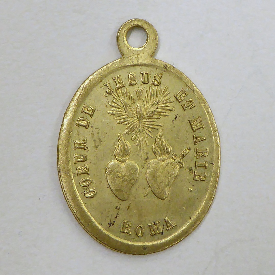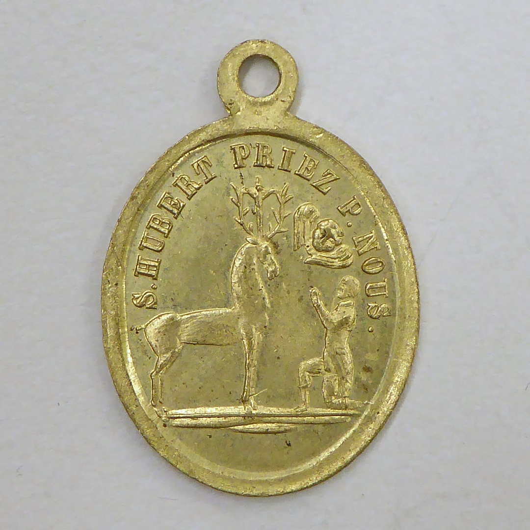 Draagpenning met St. Hubertus met hert, kz. H. Geest, H. Harten van Christus en Maria
