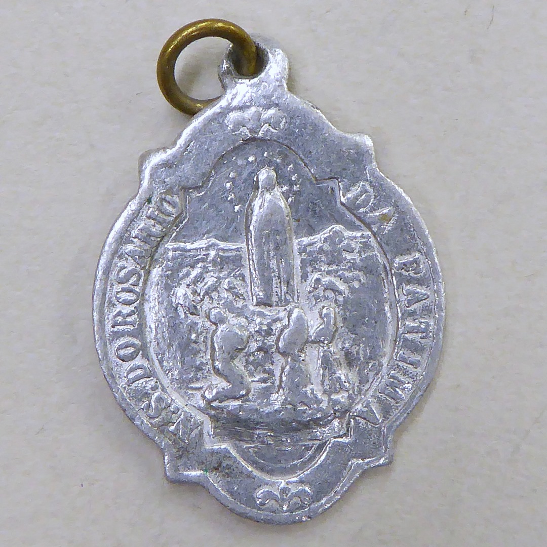 Bedevaartspenning O.L. Vrouw van Fatima met verschijning, kz. H. Hart
