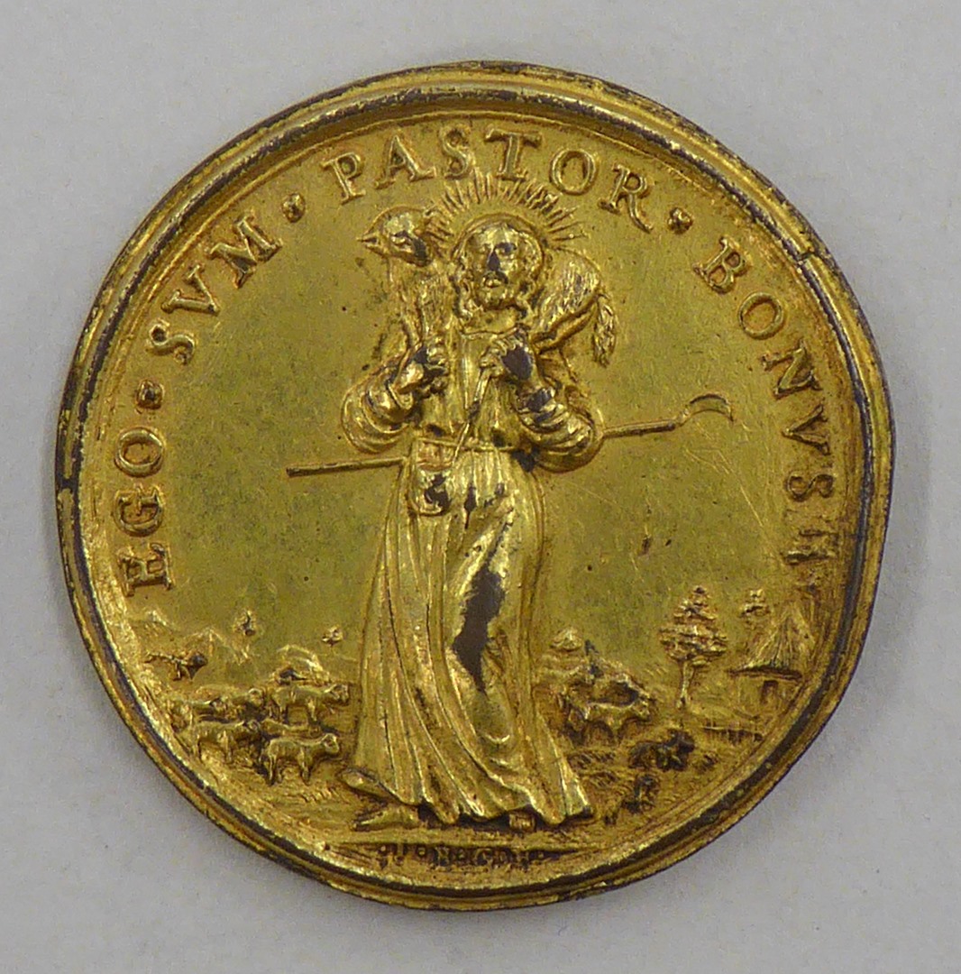Pauspenning met portret Innocentius XI (1676-1689), kz. Goede Herder