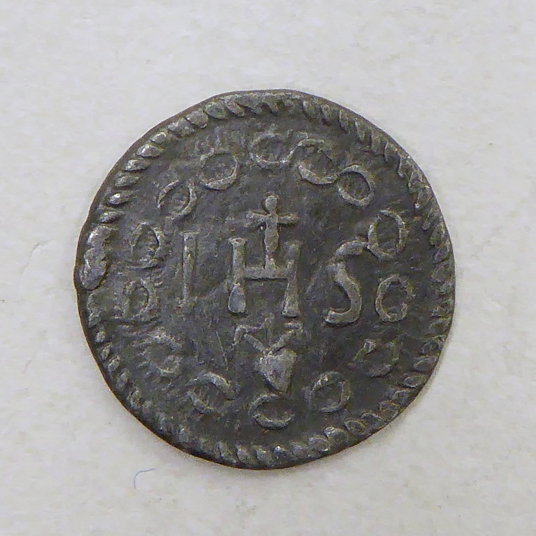 Devotiepenning met IHS, kz. piëta