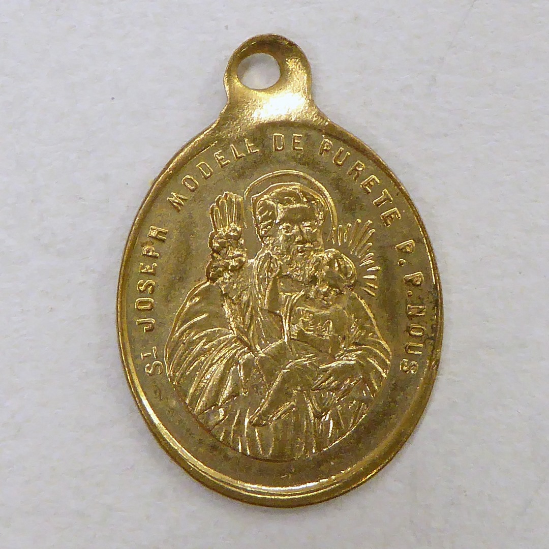Goudkleurige draagpenning met H. Jozef, voorbeeld van kuisheid, kz. H. Familie